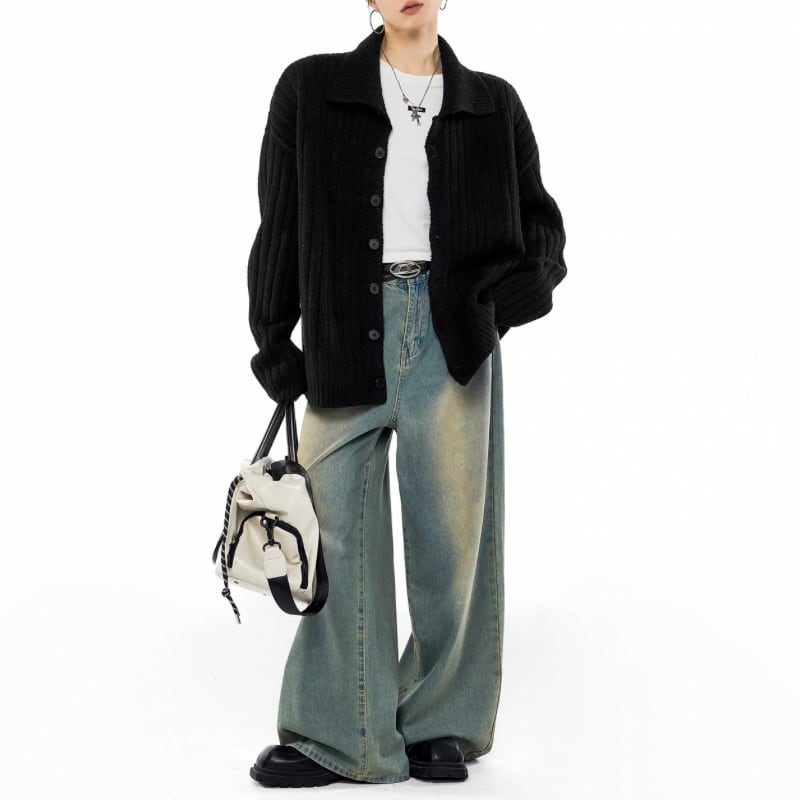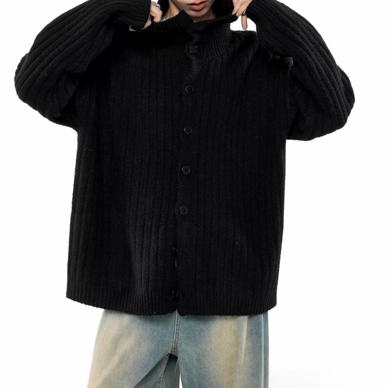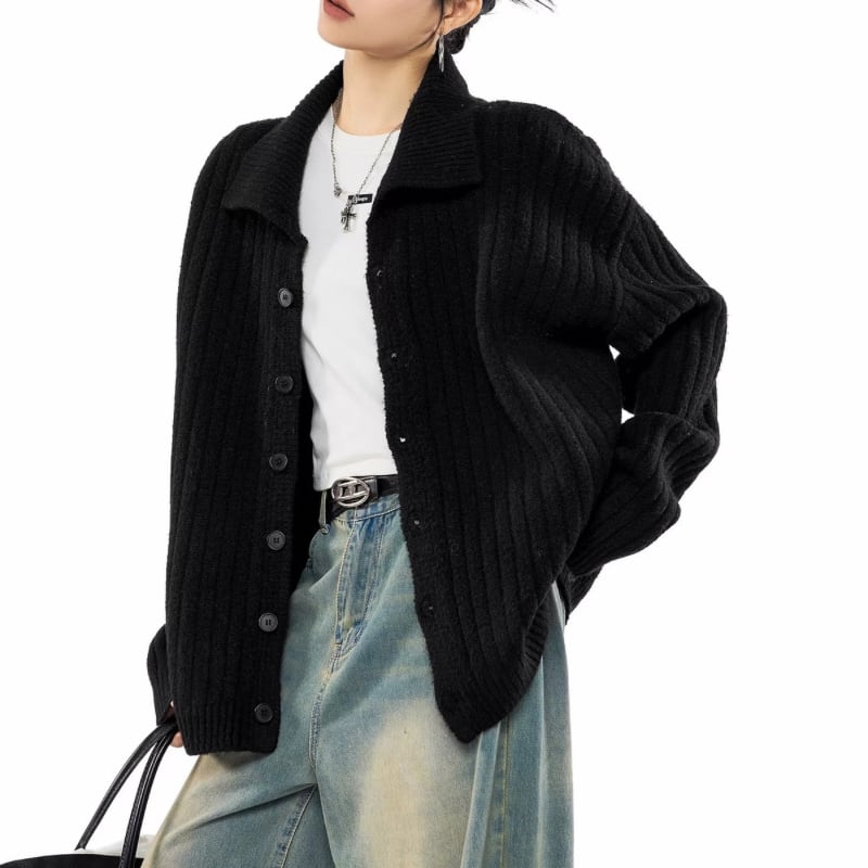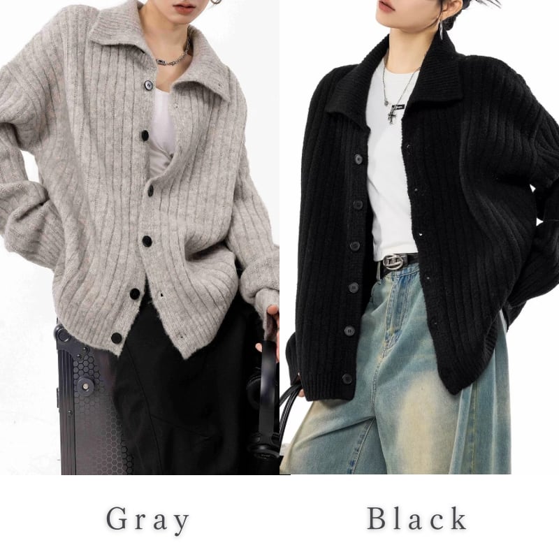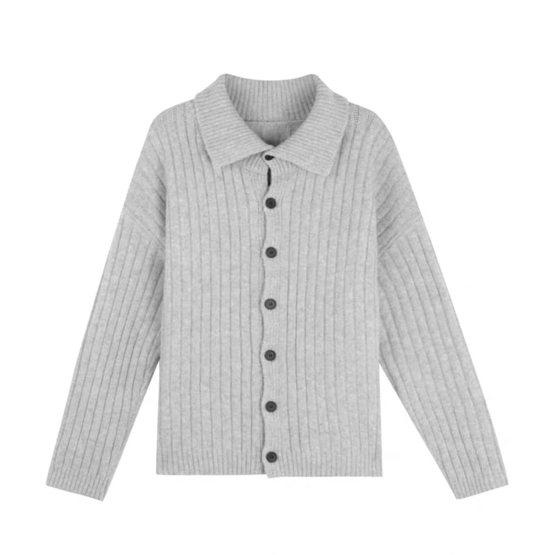 Rib front button knit cardigan 2colors V2792