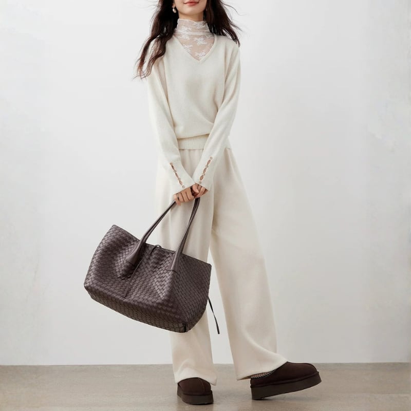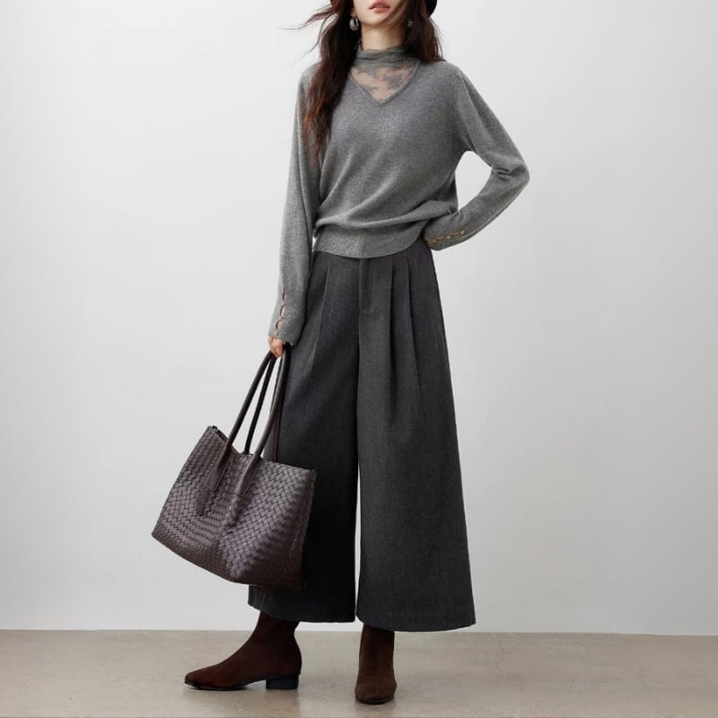 抜けと奥行きを感じさせるニットトップス。