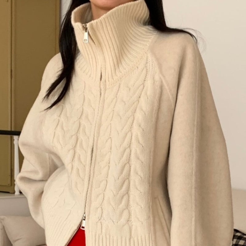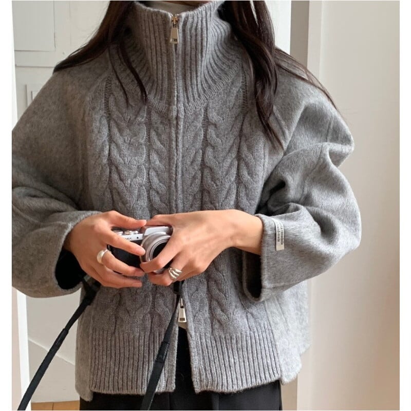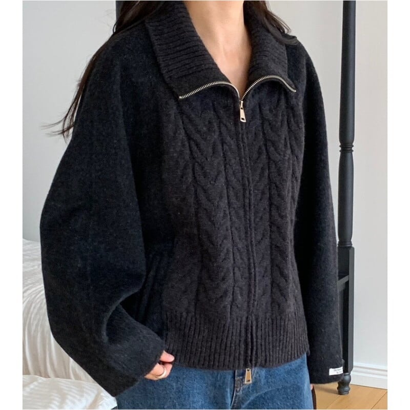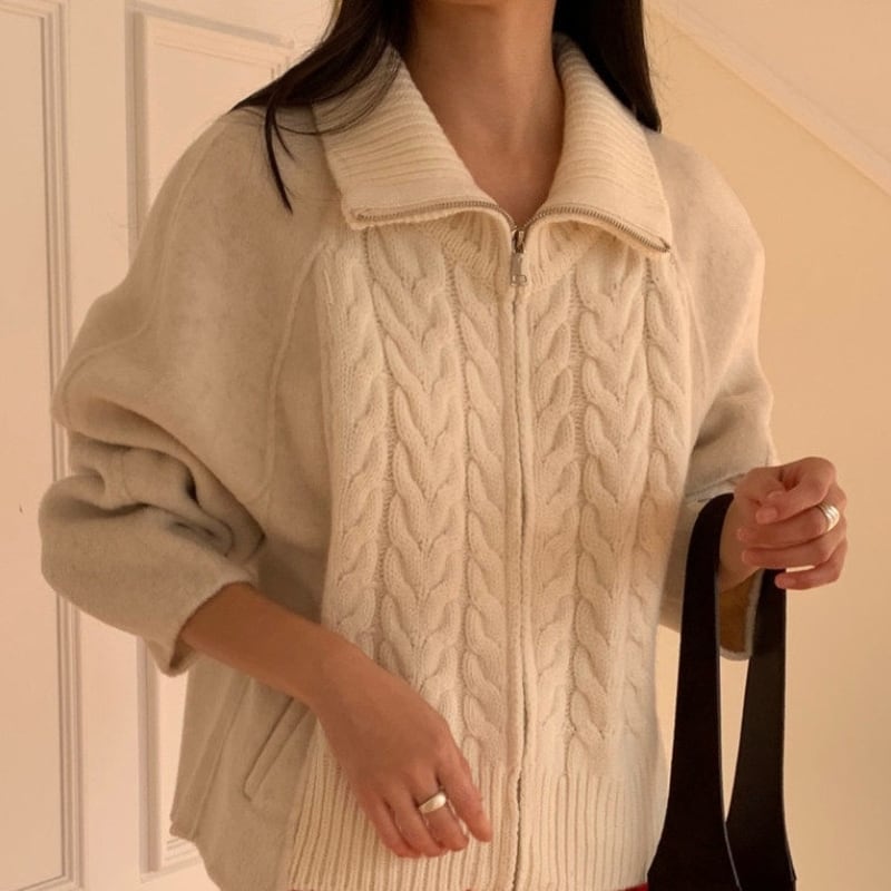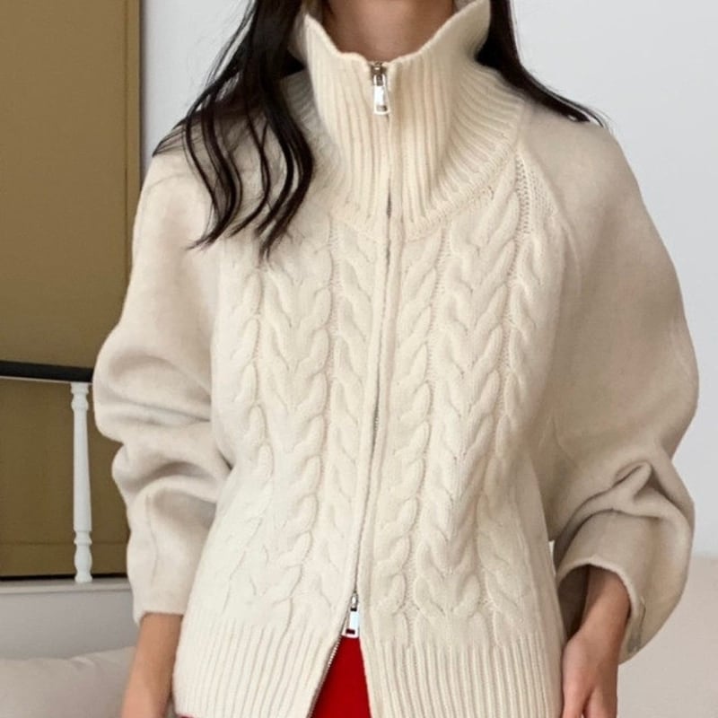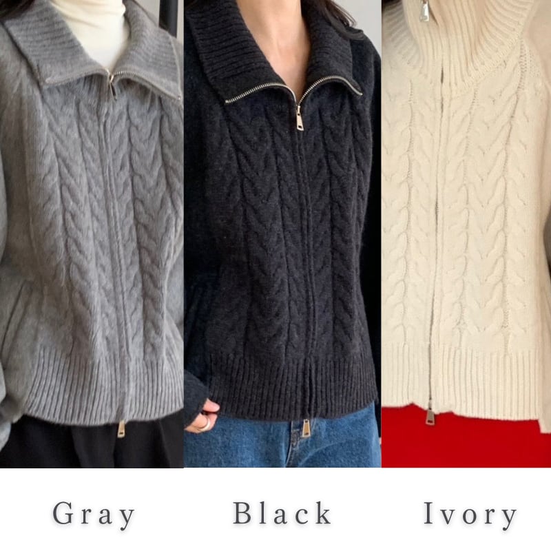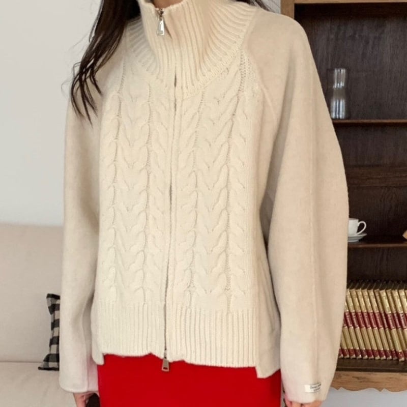 Double zip cable knit cardigan 3 colors V2771