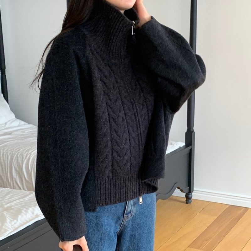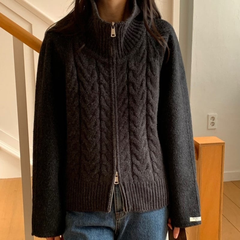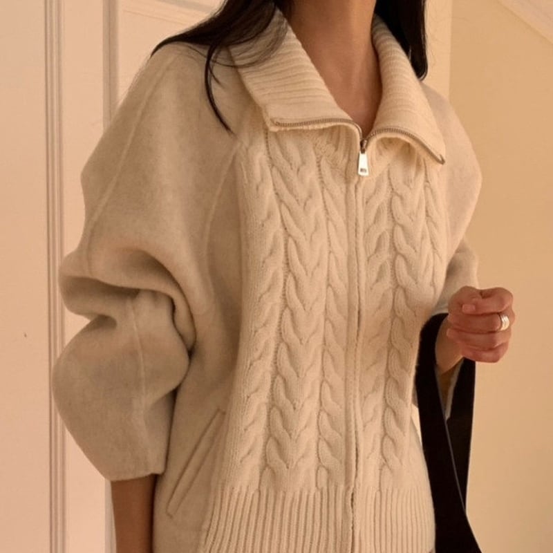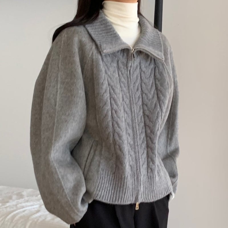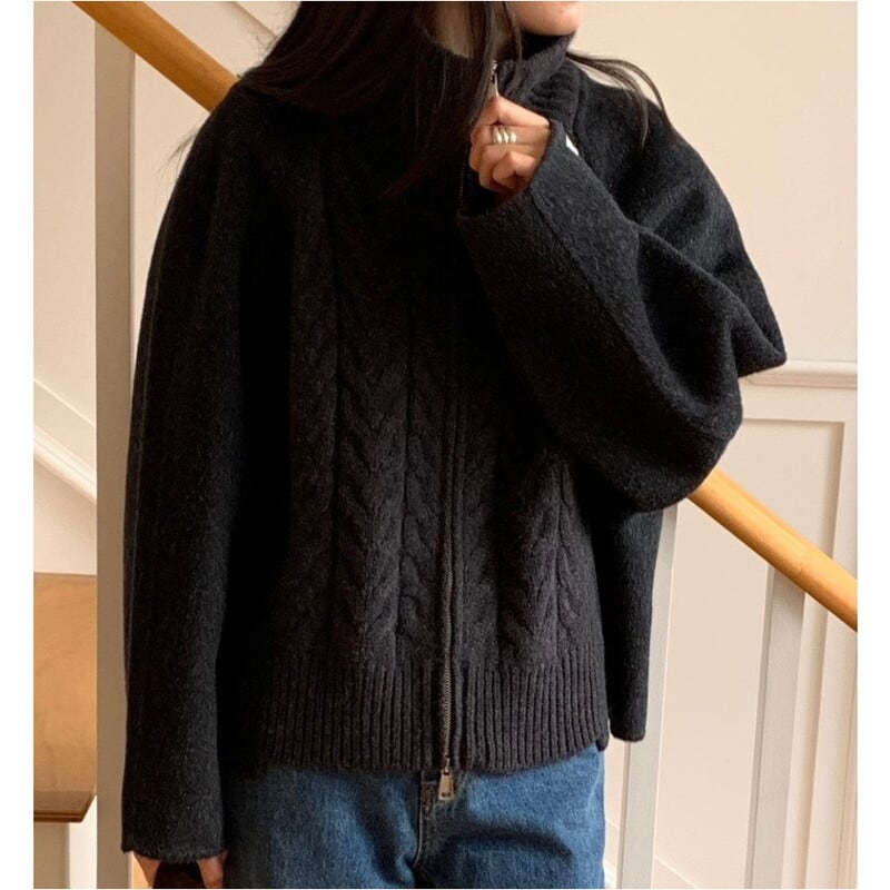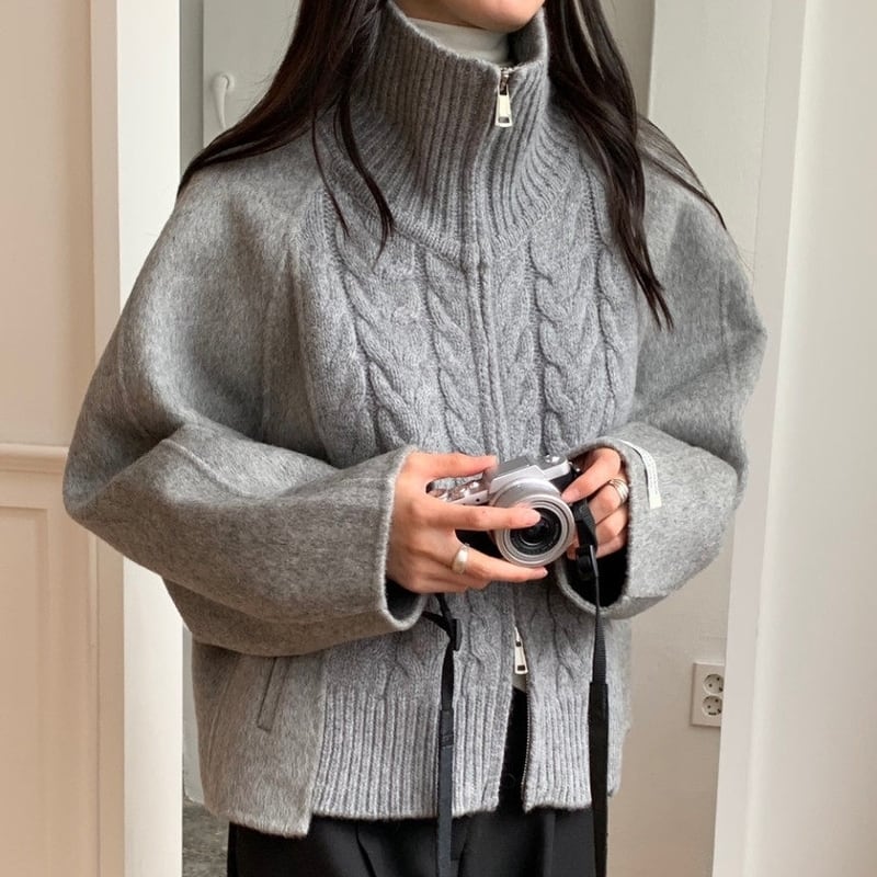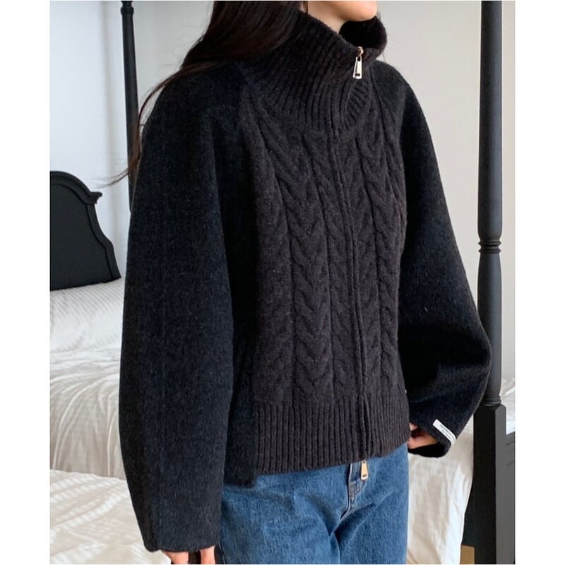 Double zip cable knit cardigan 3 colors V2771