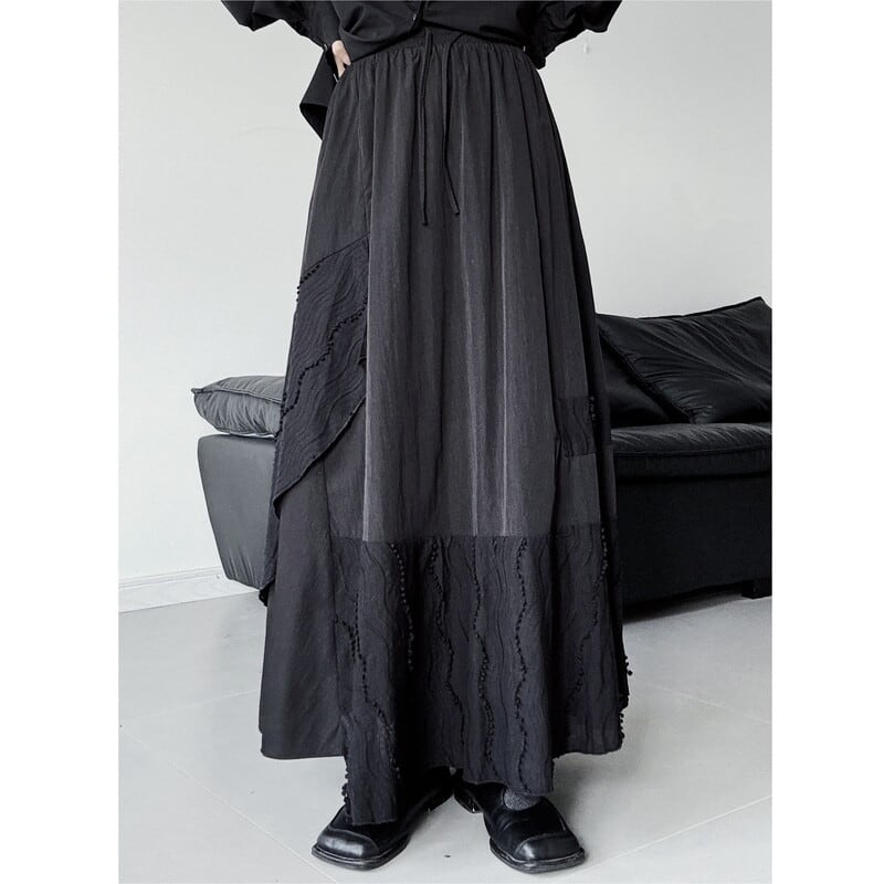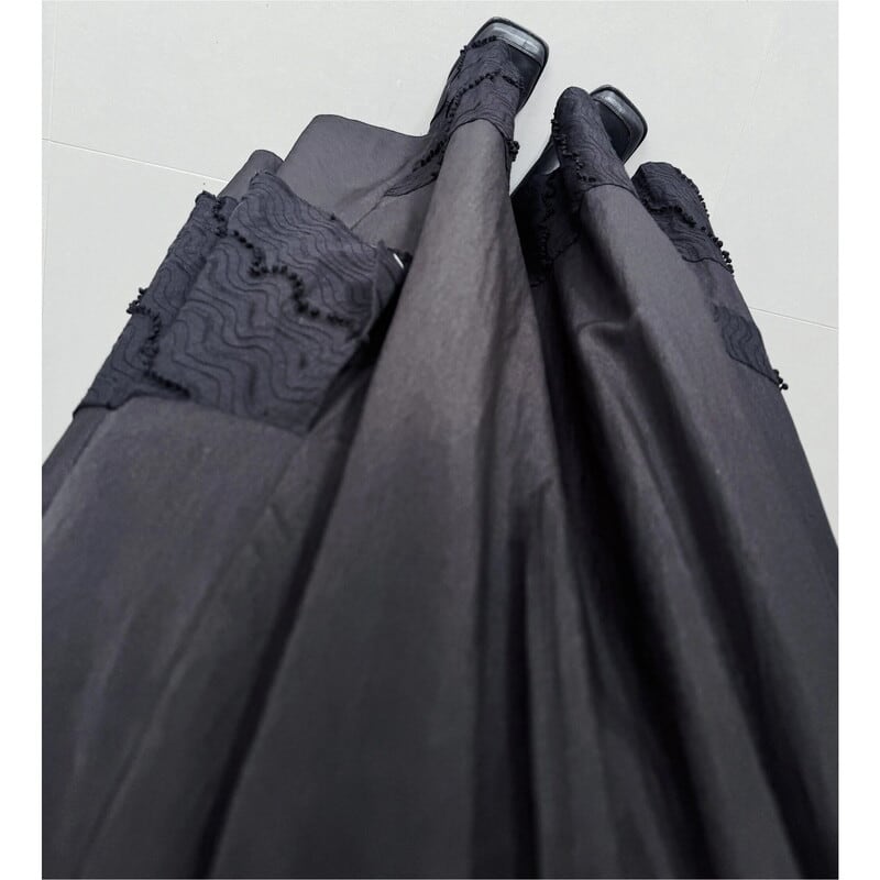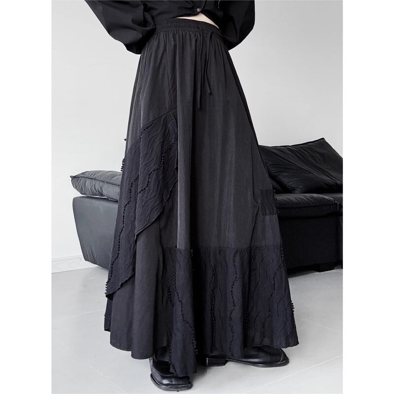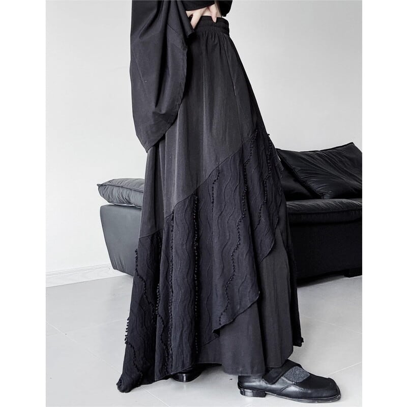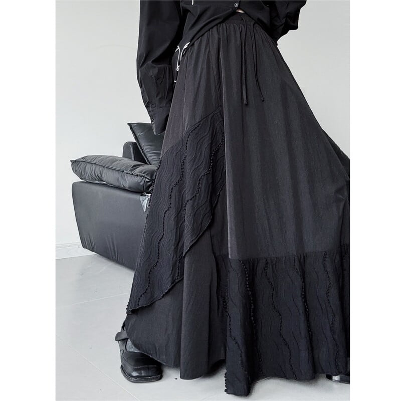 Patchwork flare long skirt V2774