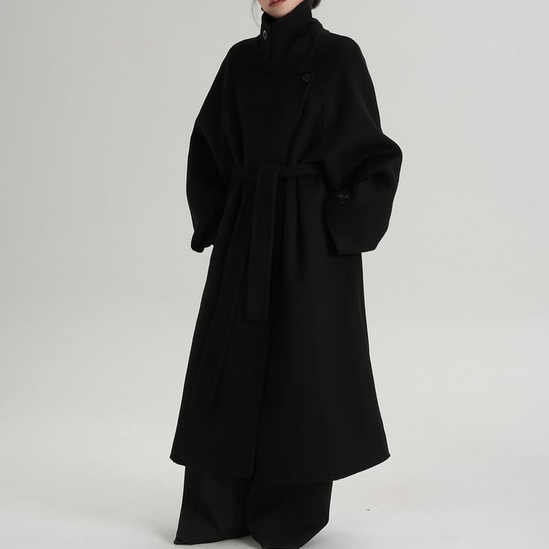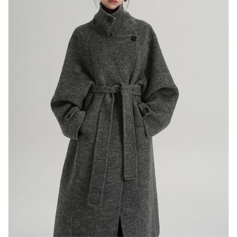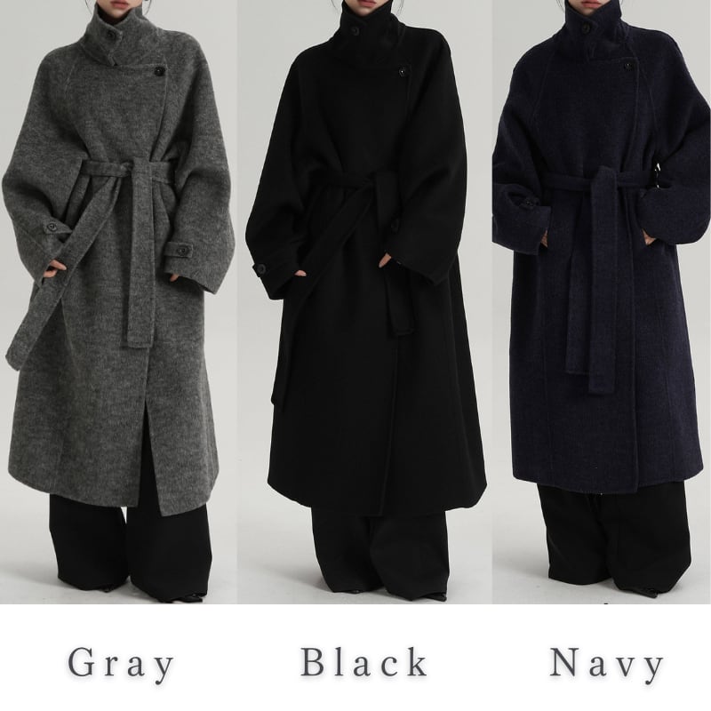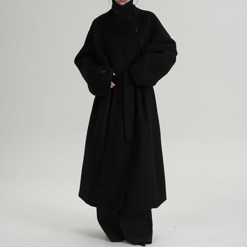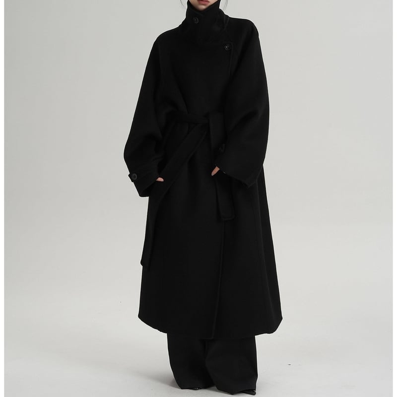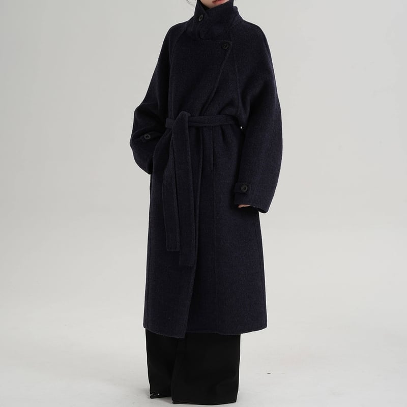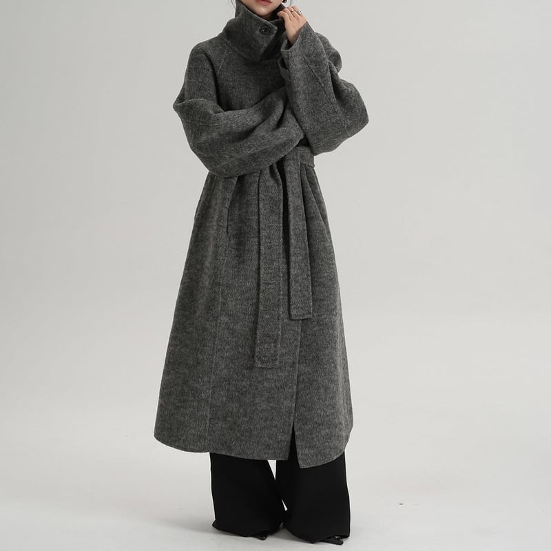 スタンドカラーとドロップショルダーの抜け感がハンサムな質感を演出。