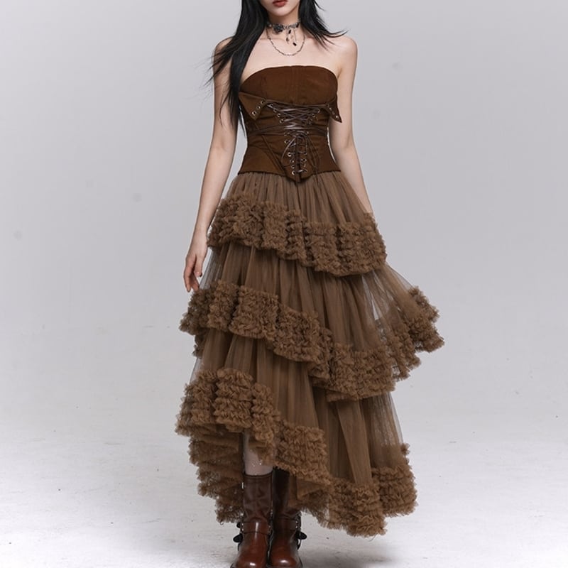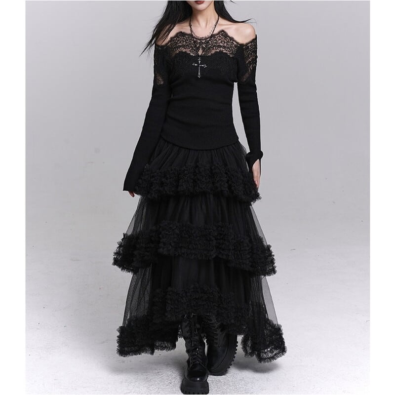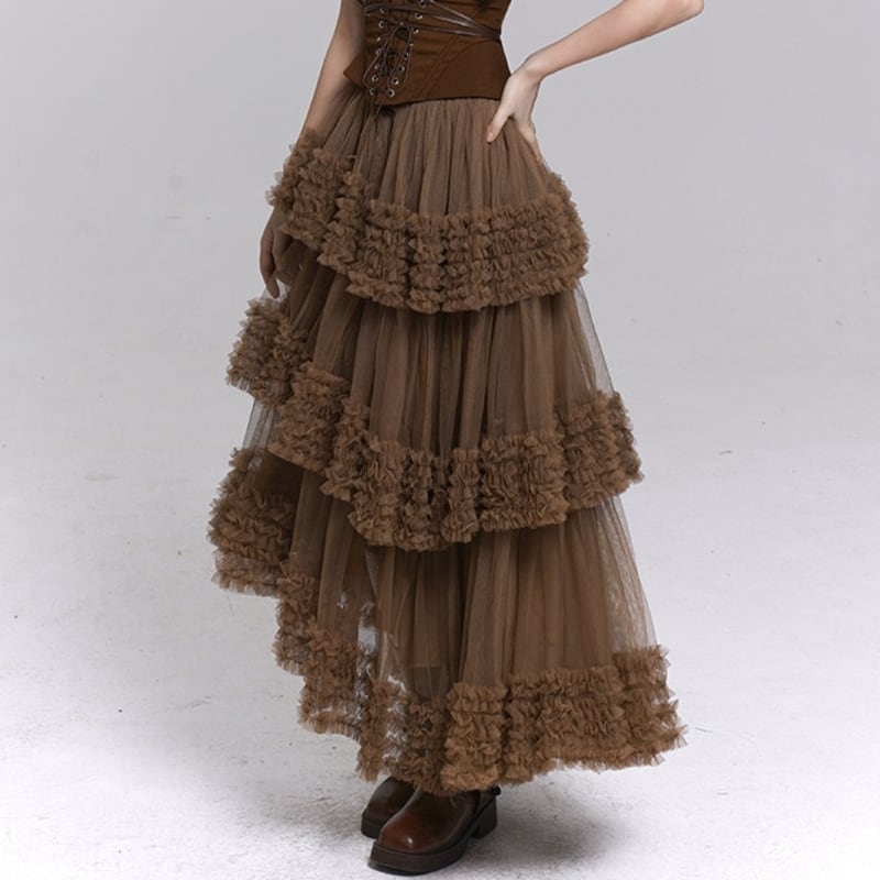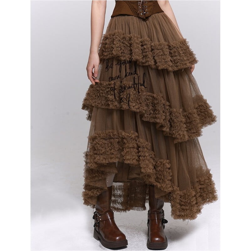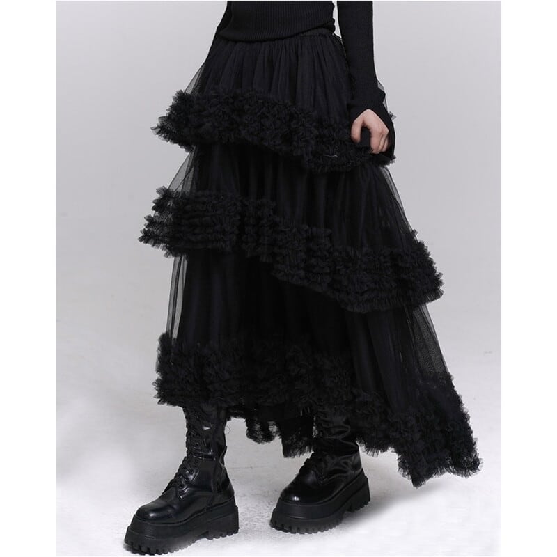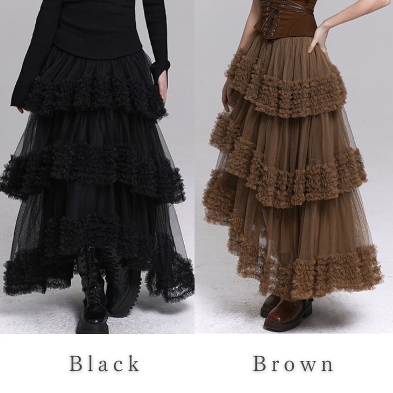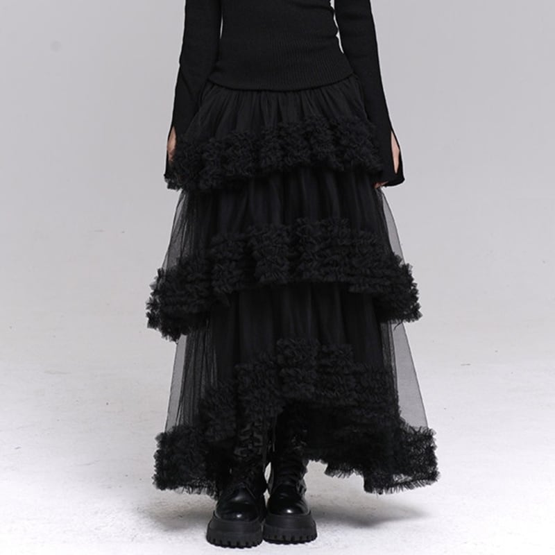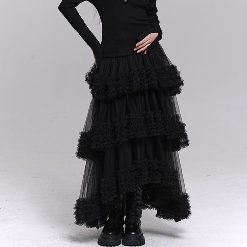 フリルがポイントのアシンメトリーチュールロングスカート。
