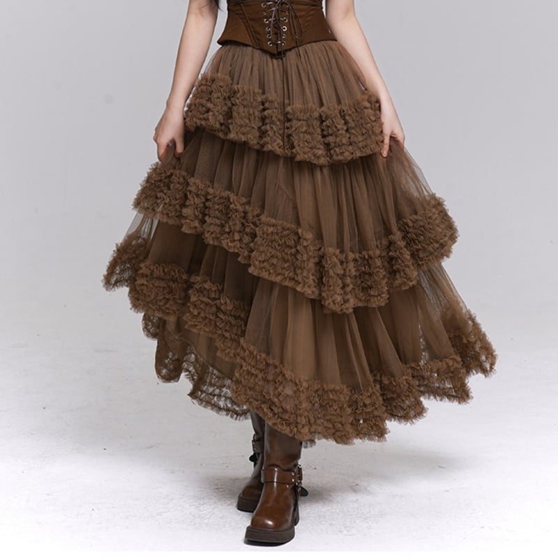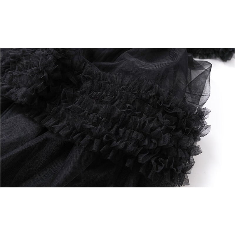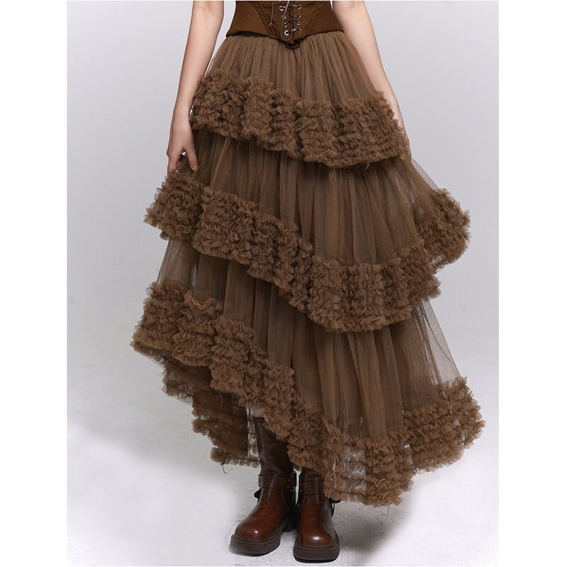 Asymmetrical ruffle tulle skirt 2 colors V2786