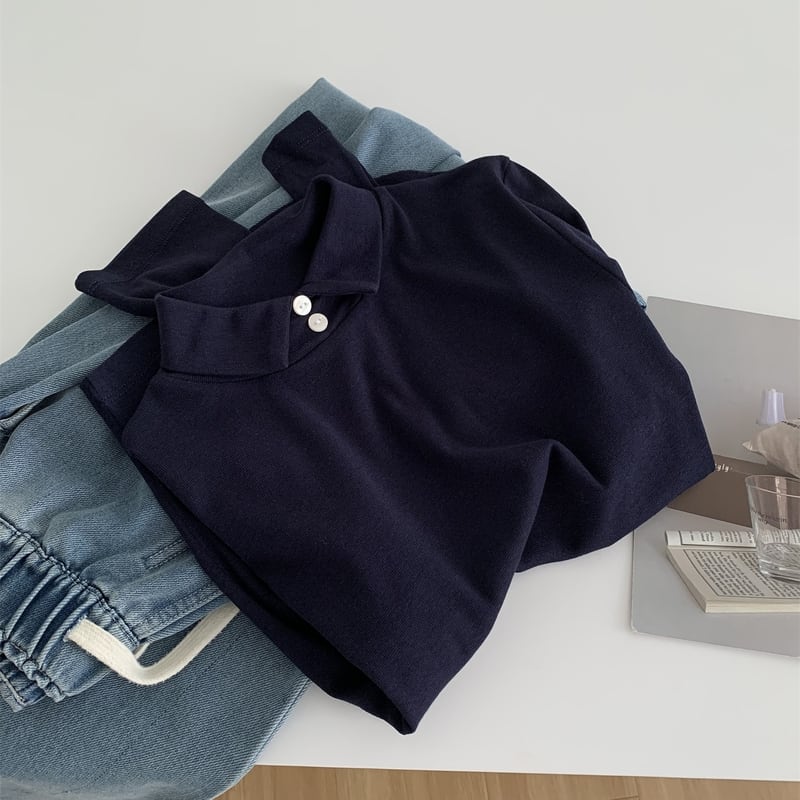 Double button high neck tops 4 colors V2787