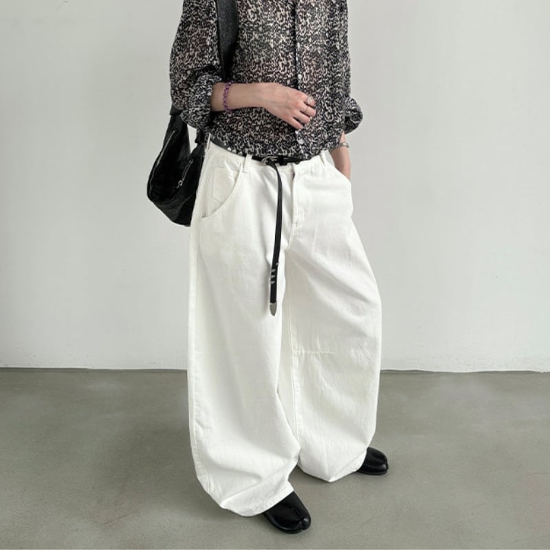 腰まわりにゆとりを持たせたワイドシルエットが特徴のパンツ。