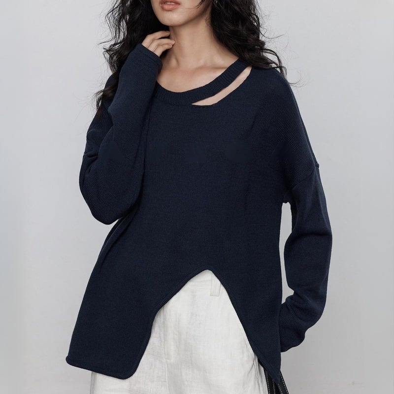 Asymmetric cut shoulder knit tops 3 colors V2821