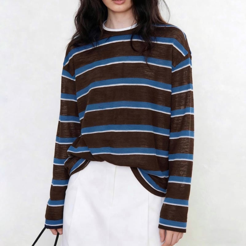 Sheer stripe loose pullover 9 colors V2824