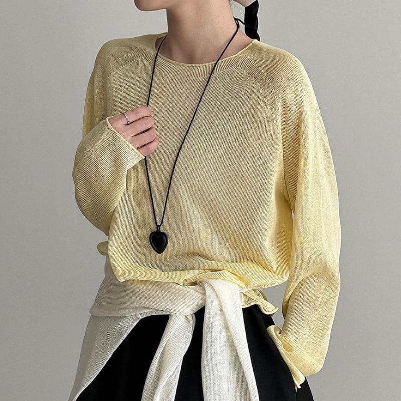透け感のある編み地が特徴のシアートップス。