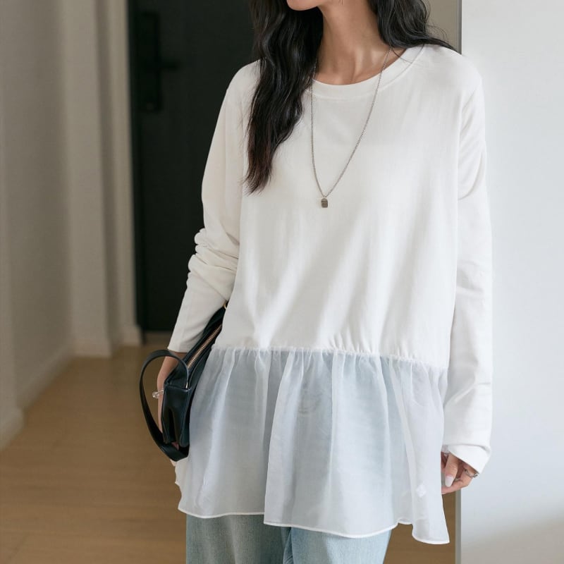 ギャザーを寄せたシアー生地が抜け感を作り、