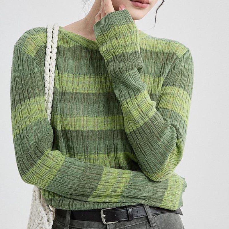Mixed border sheer knit tops 2 colors V2837