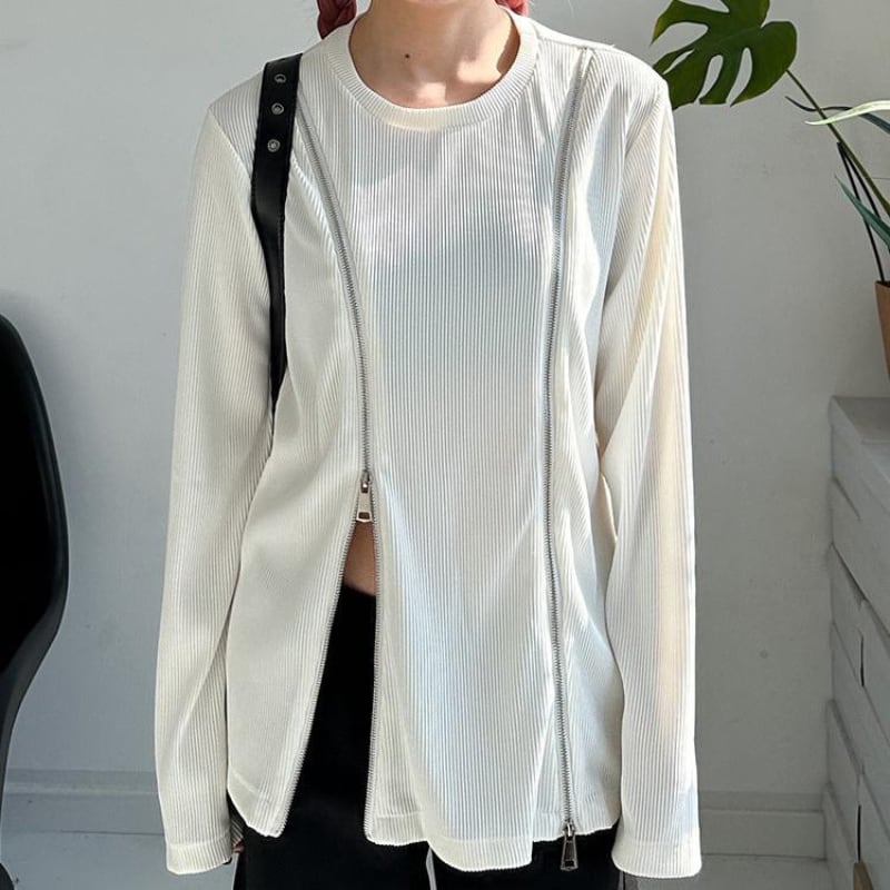 縦リブ素材にフロントのダブルジップを