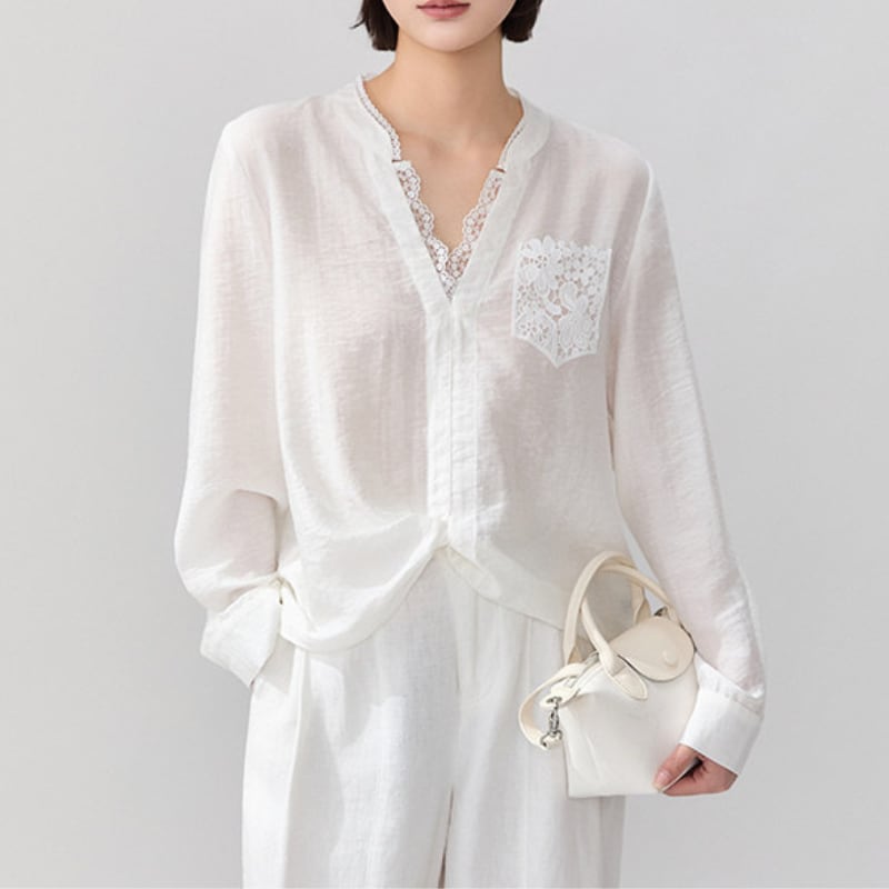 Lace pocket twist shirt V2876