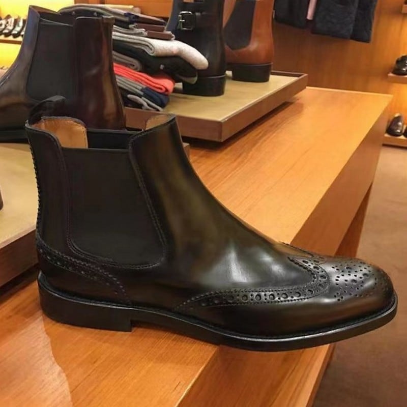 ベーシックなサイドゴアブーツにウィングチップを施し、