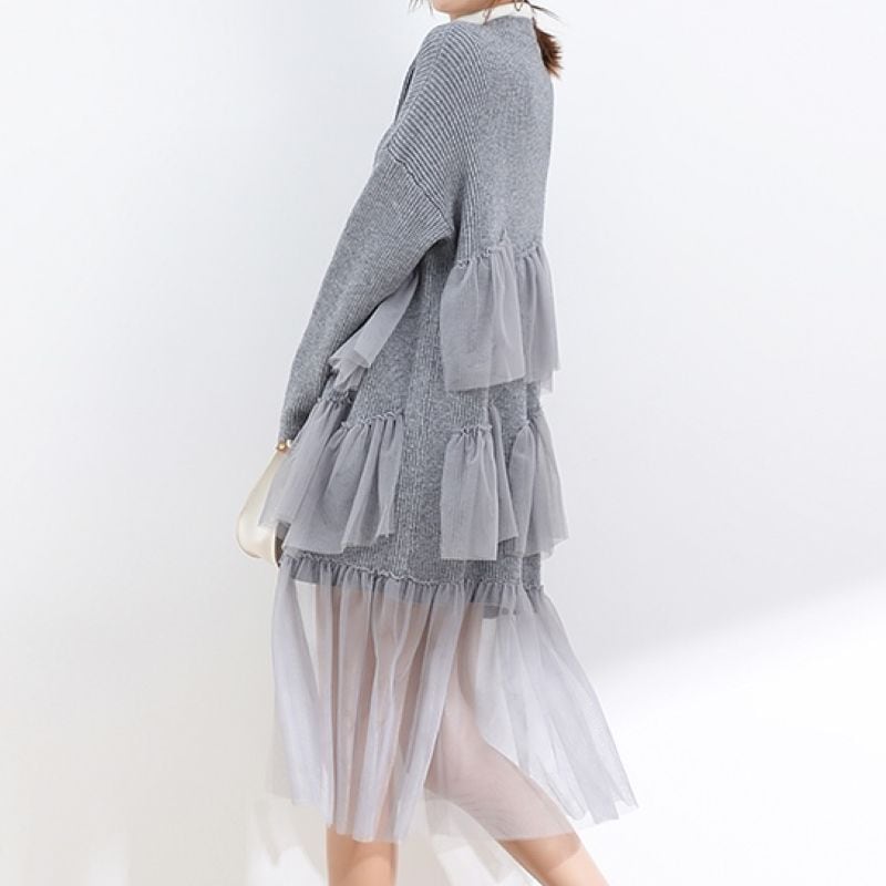 細みのリブでほどよいタイト感があり、ボリューム袖と長めのカフスでレトロな雰囲気に。