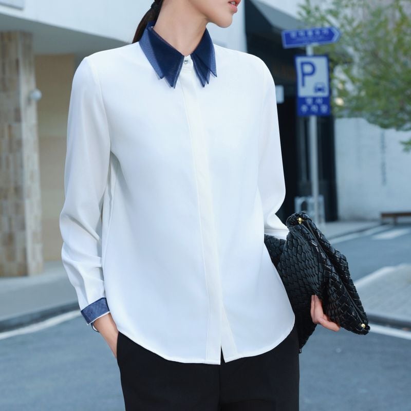 Sheer triple collar blouse 2 colors V0829