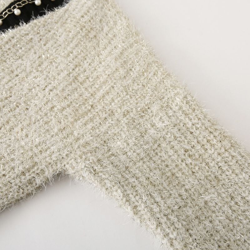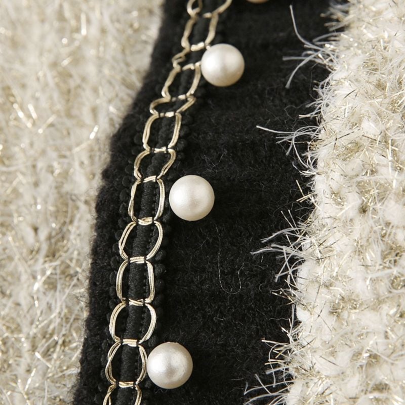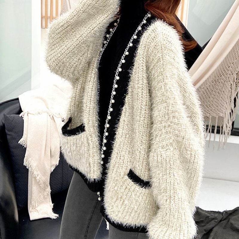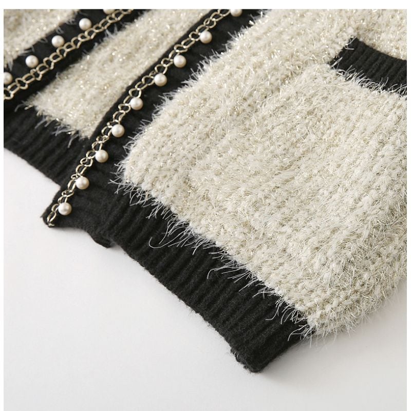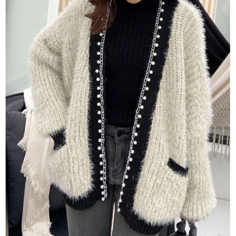 女性らしいパールトリムをプラスしたニットカーディガン。
