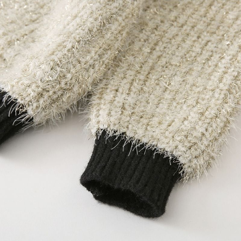 細みのリブでほどよいタイト感があり、ボリューム袖と長めのカフスでレトロな雰囲気に。