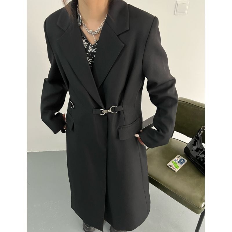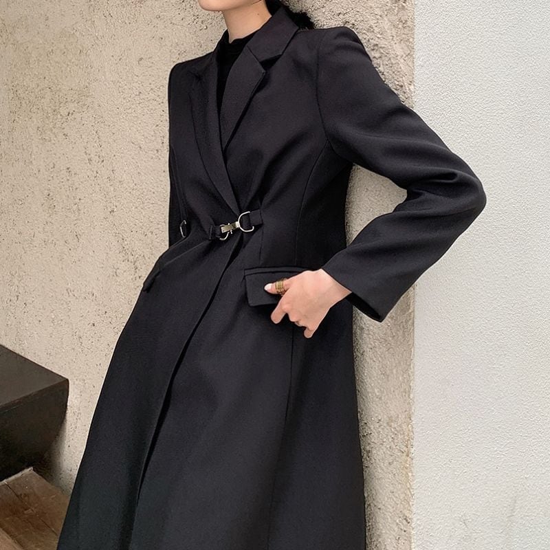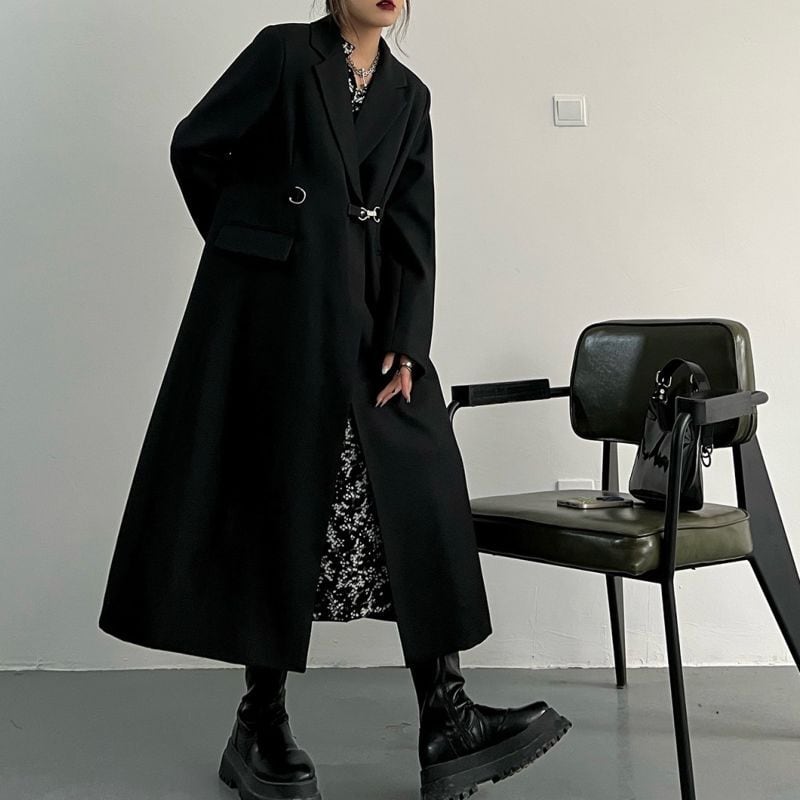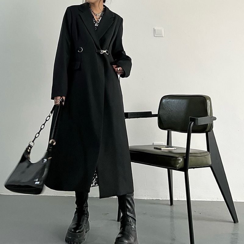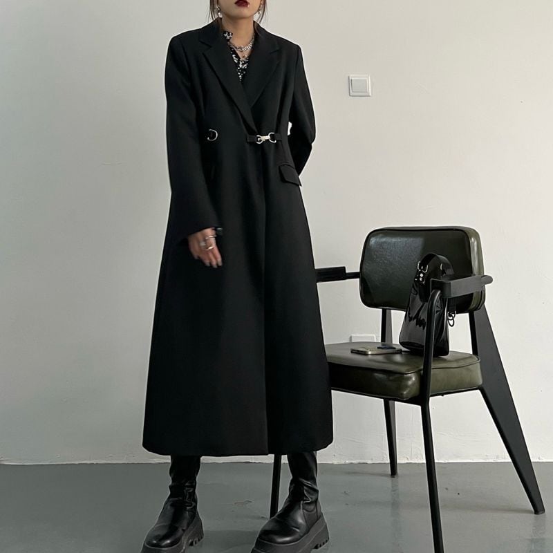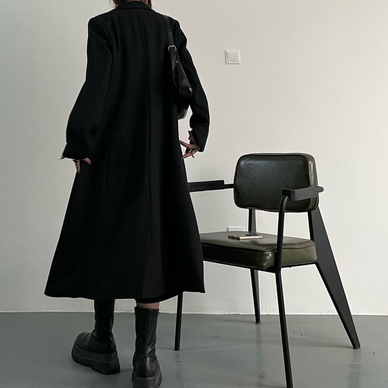 ▼ Asymmetrical stand collar long coat 2 colors V1647