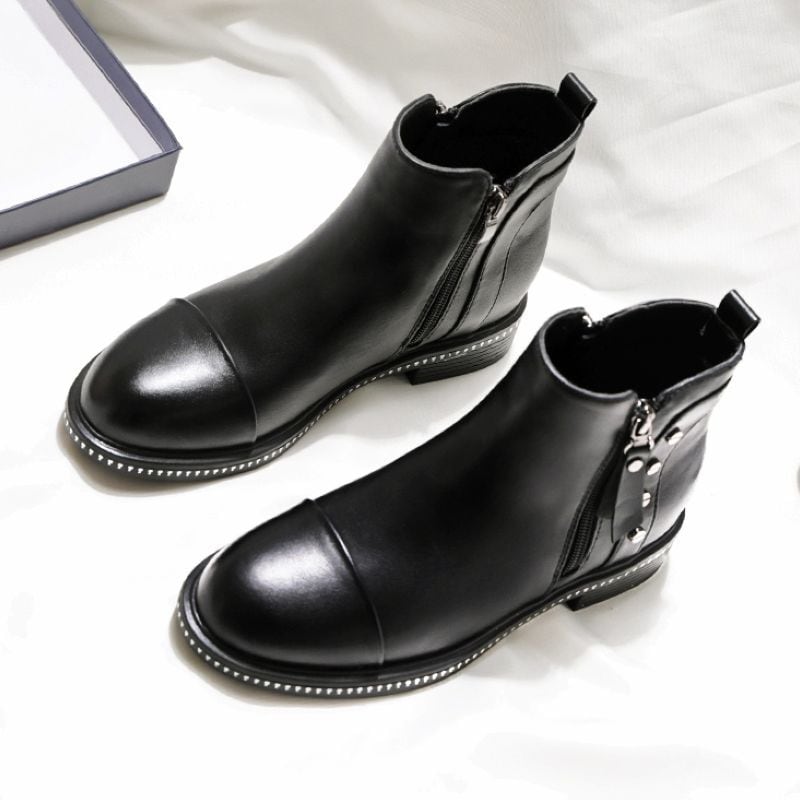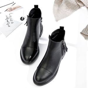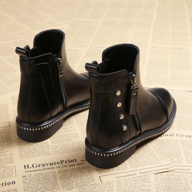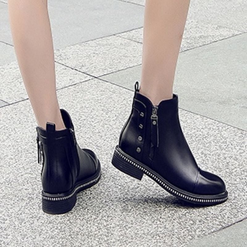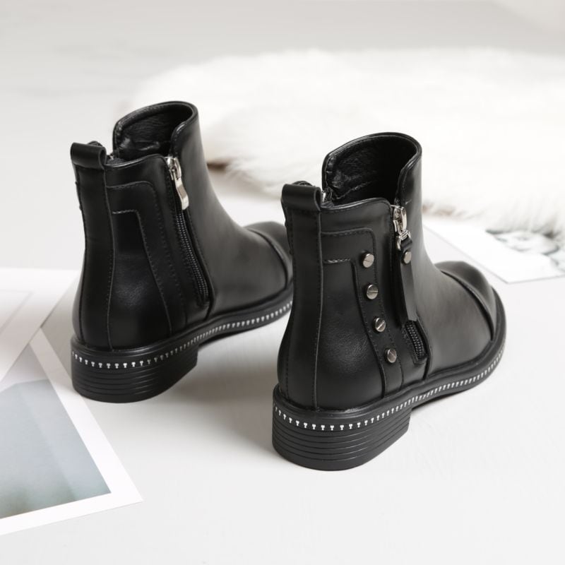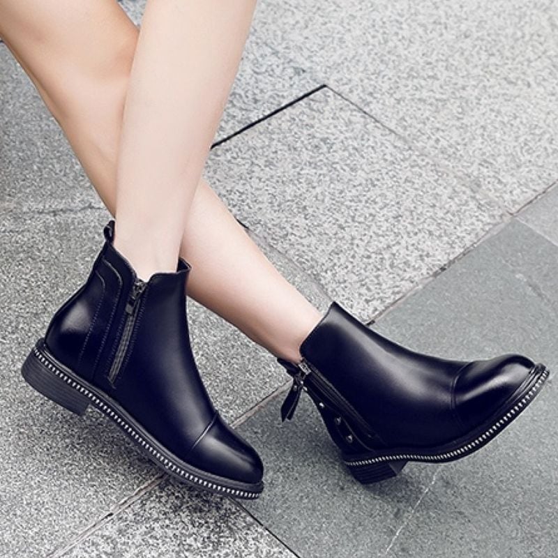 スタッズデザインがスタイリッシュなローヒールブーツ。
