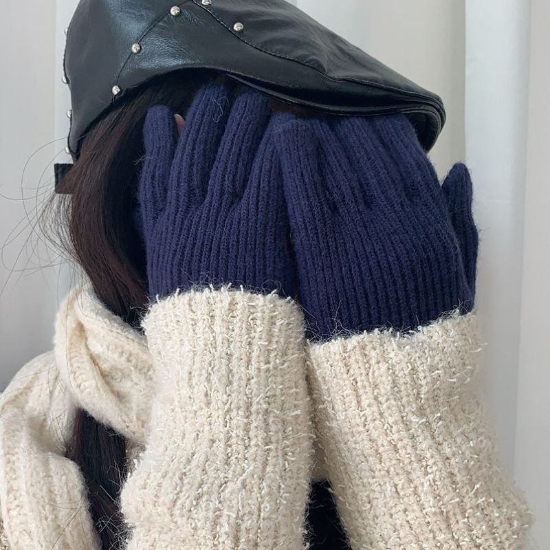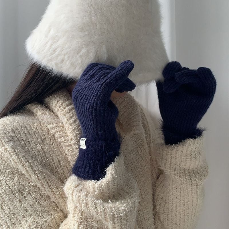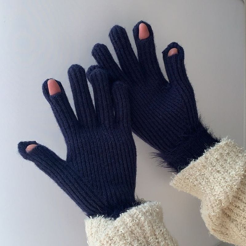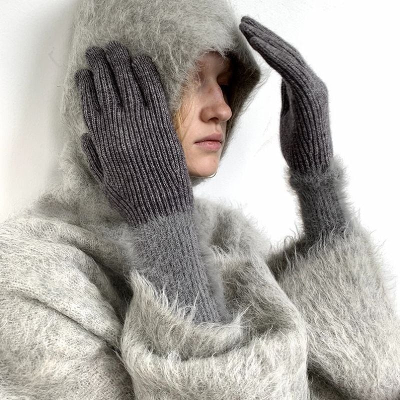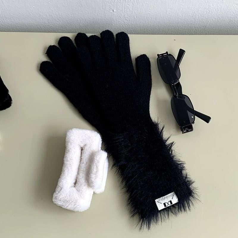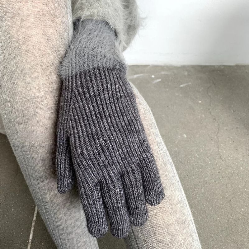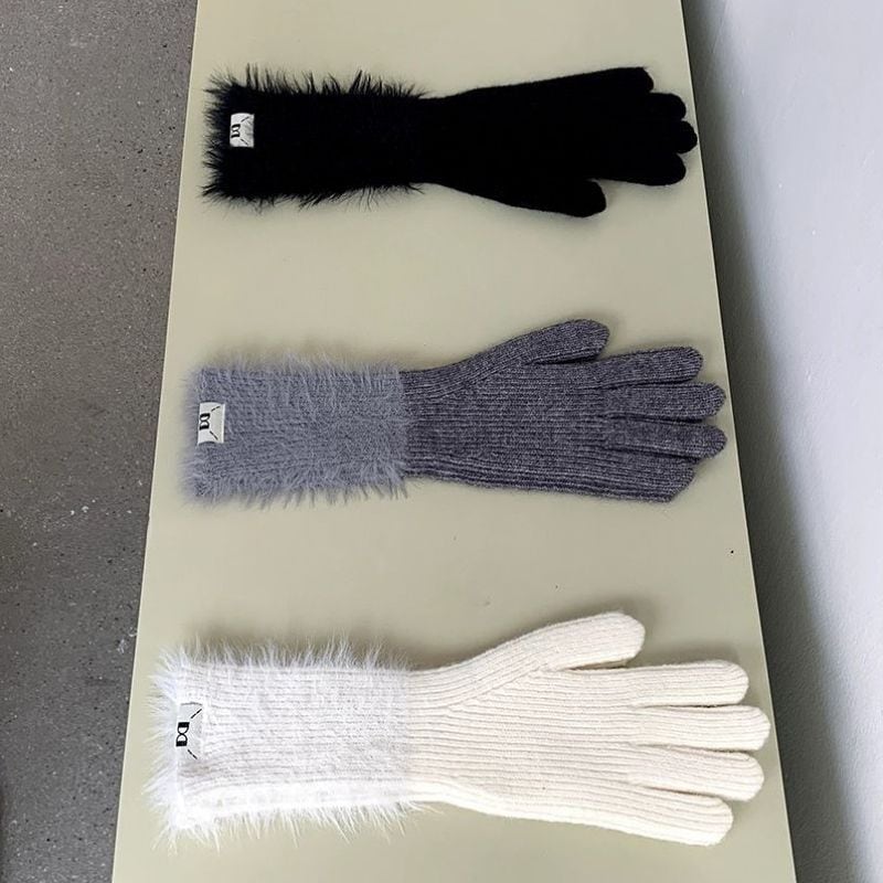 毛足長めの糸を手首部分に使用し、ふわふわの肌触りと