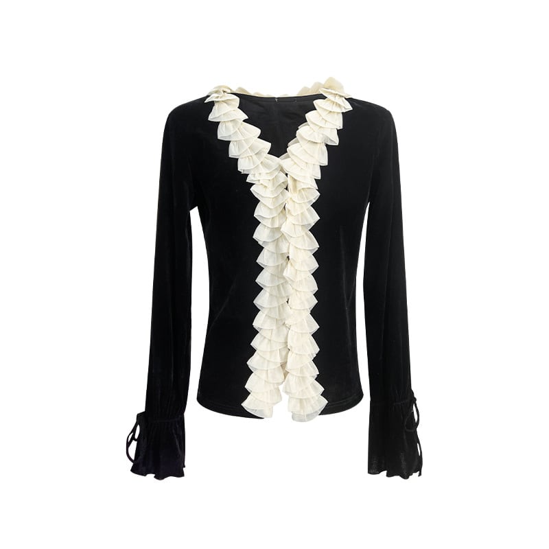 French pleats velvet tops V1090