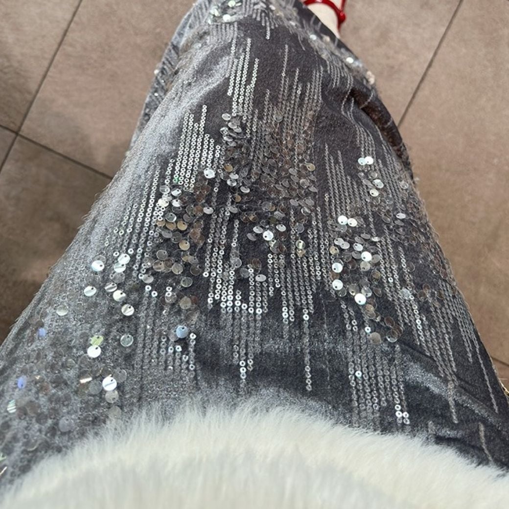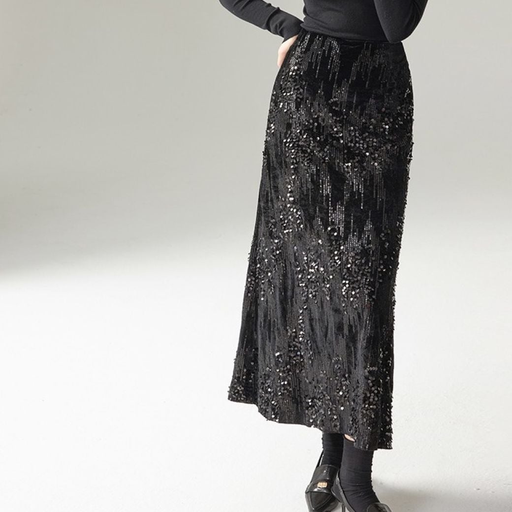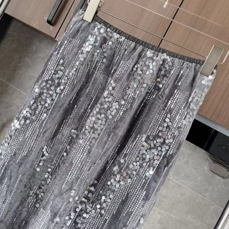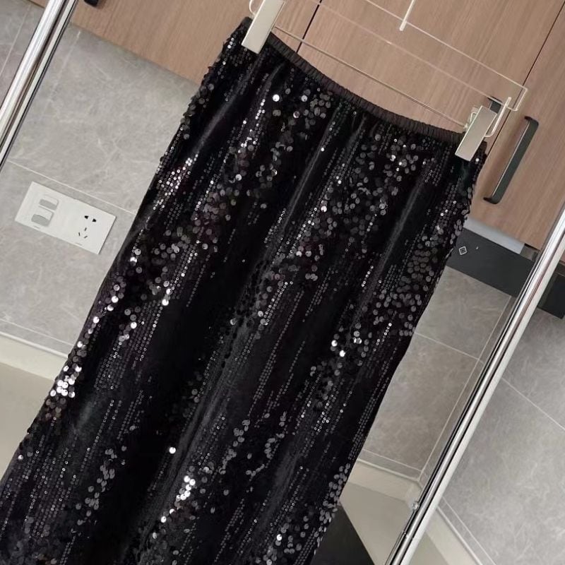 Sequined long flare skirt 3 colors V1193