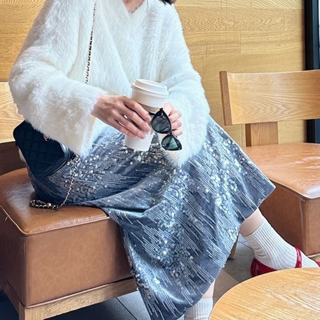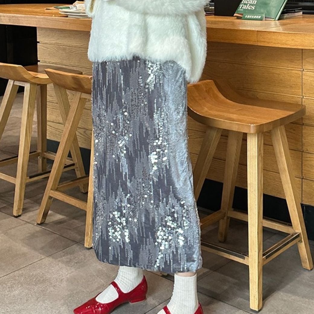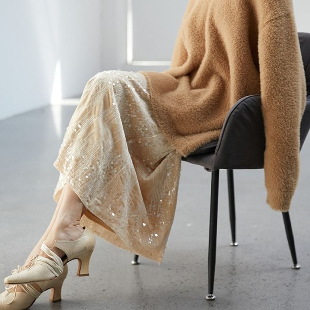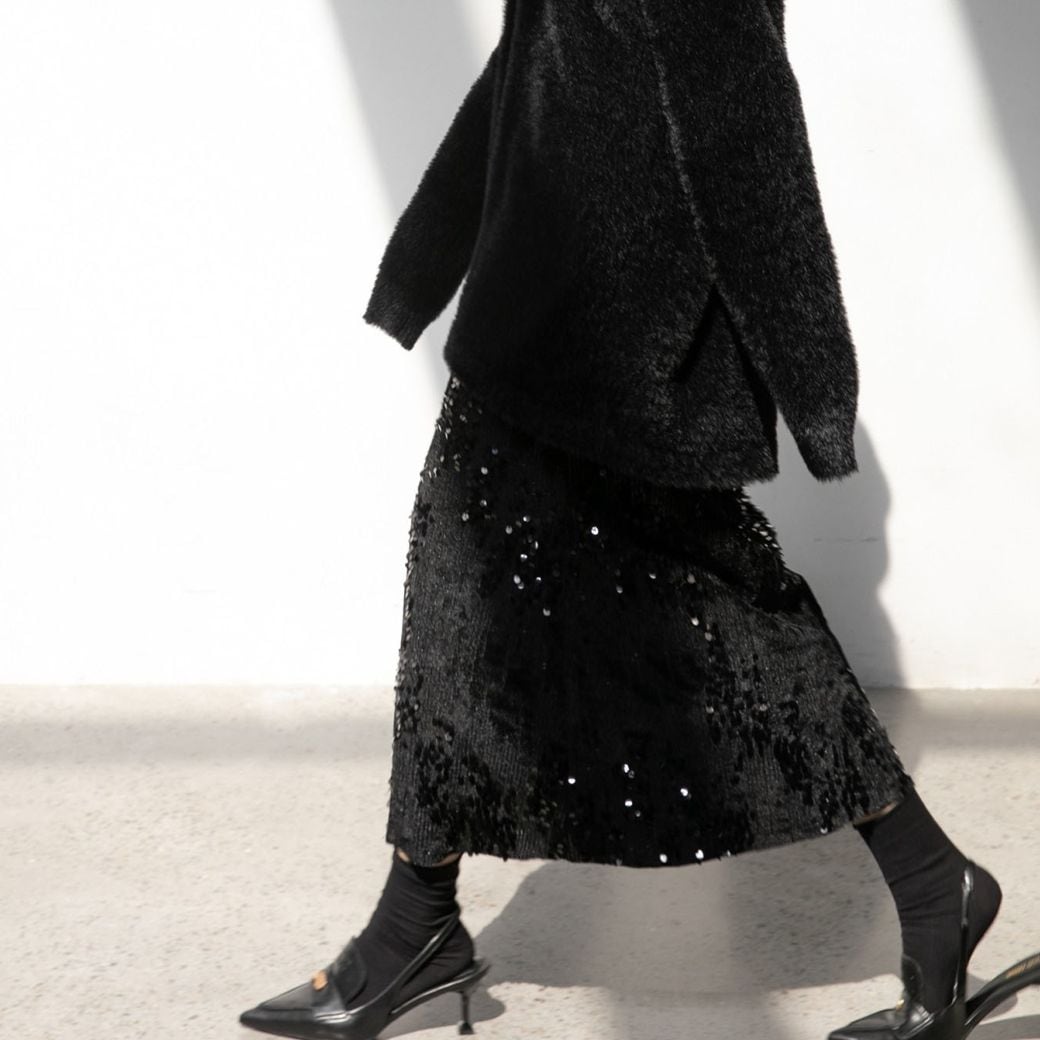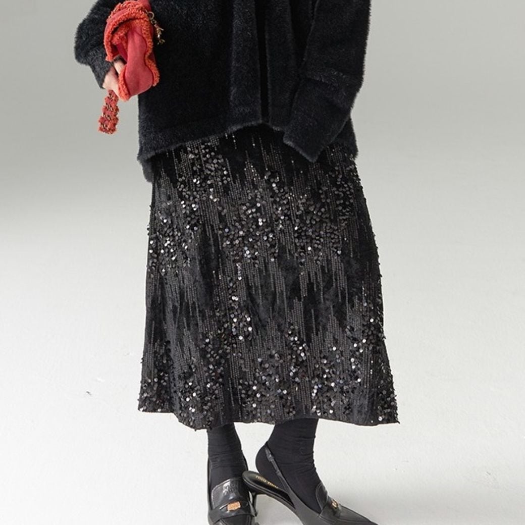 一枚で着映えするスパンコール付きスカート。