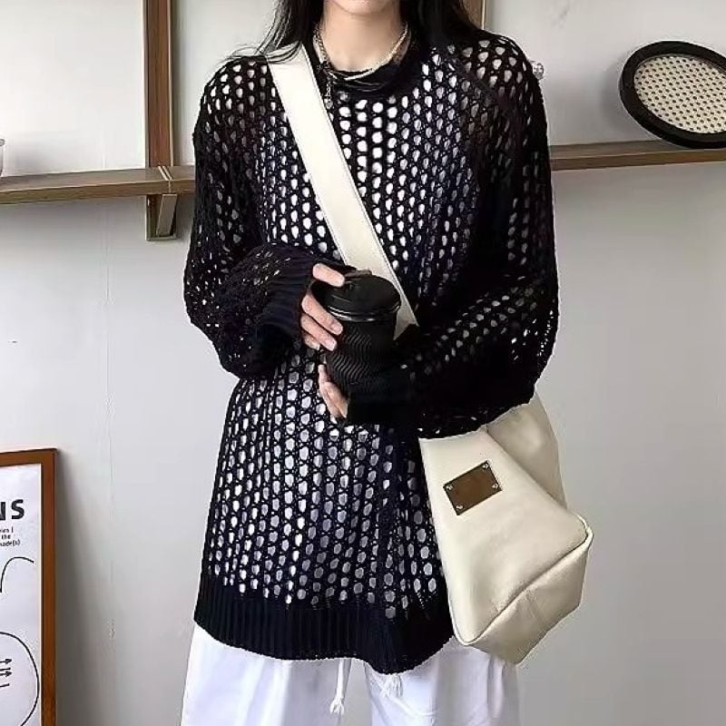 ゆるっとラフに着こなせるメッシュニットトップス。
