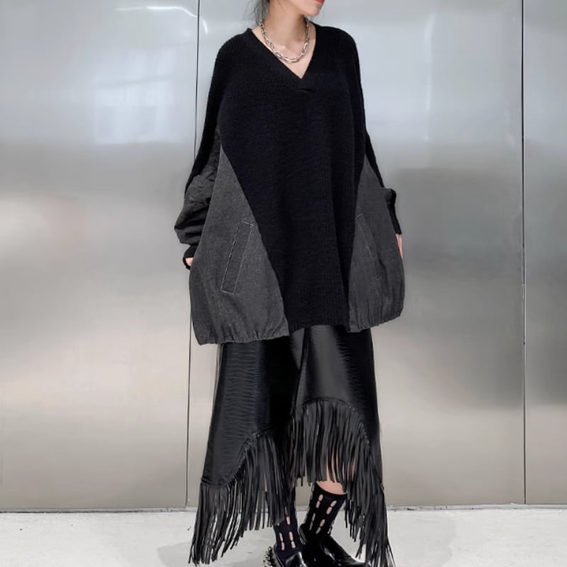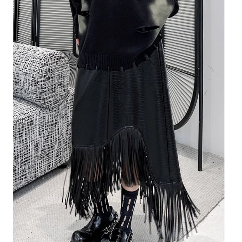 エッジの効いたデザインが目を引くフリンジヘムスカート。