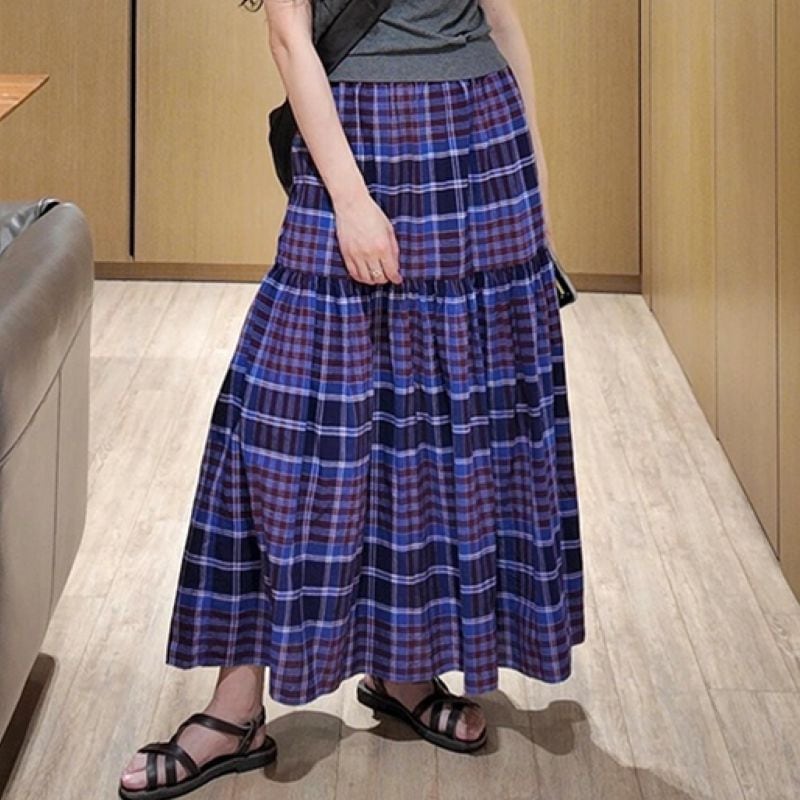 Madras check tiered skirt V1682