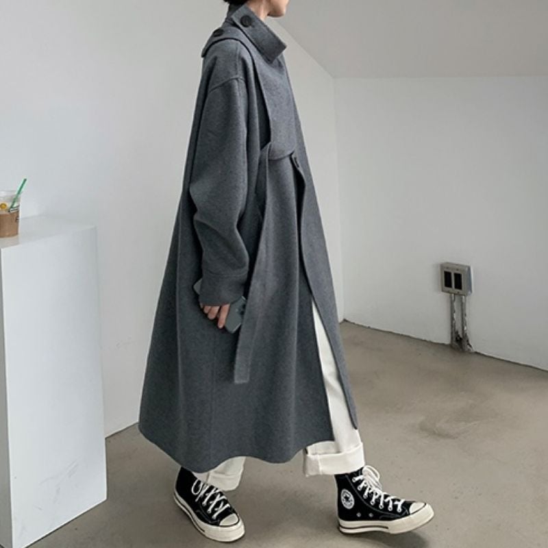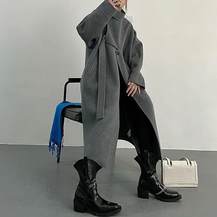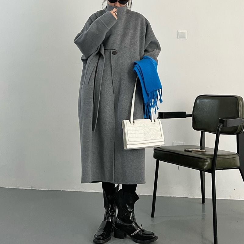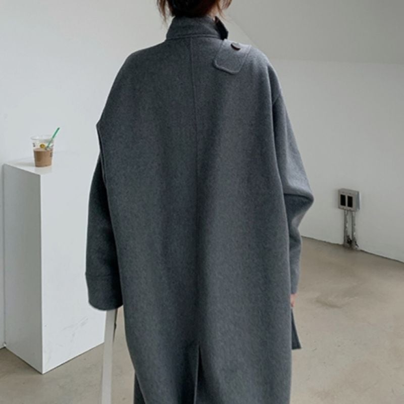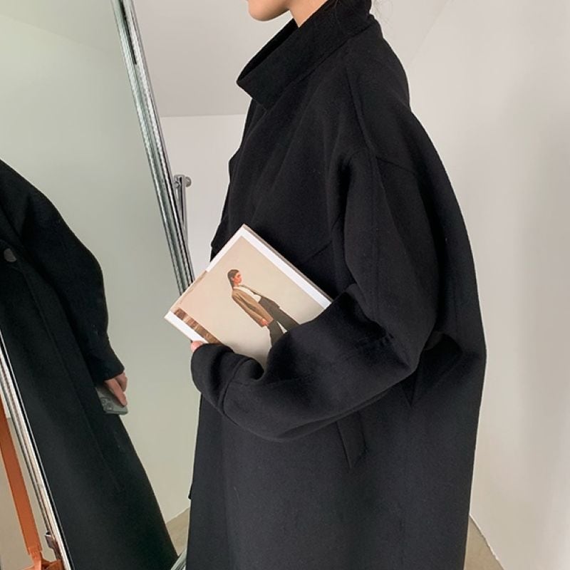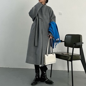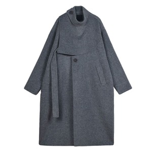 Asymmetrical stand collar long coat 2 colors V1647