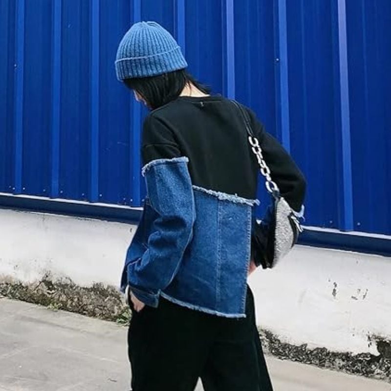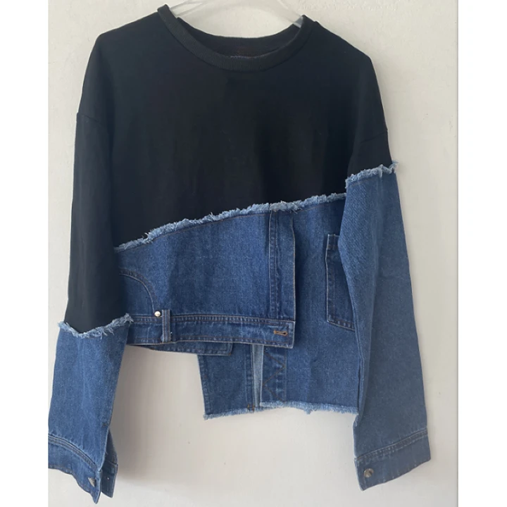 Denim docking asymmetric pullover V1649