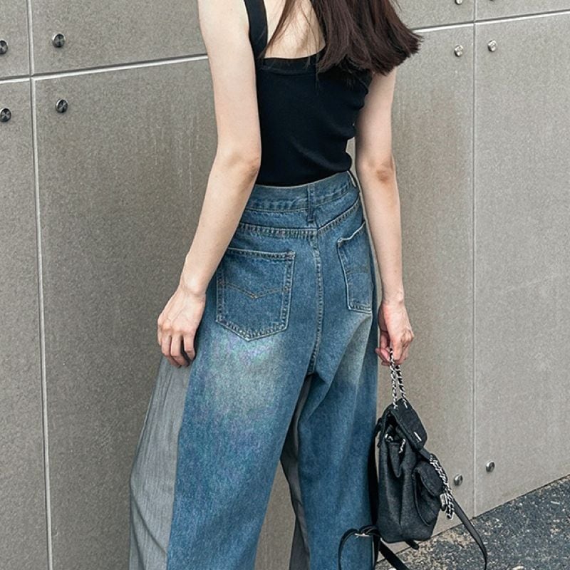 異素材の切り替えデザインが個性的なイージーパンツ。