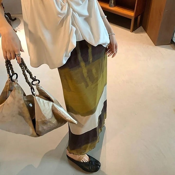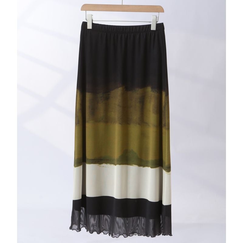 デザイン性のあるボーダーパターンがモード感あるフレアスカート。