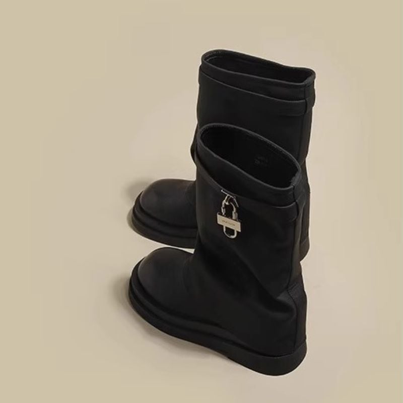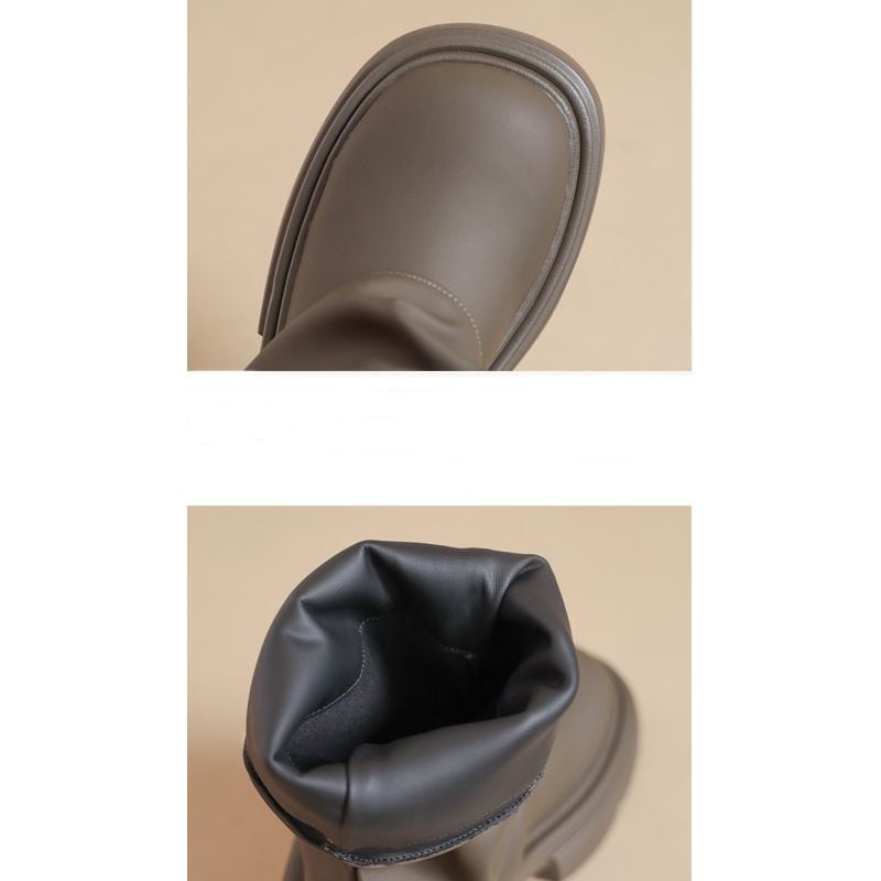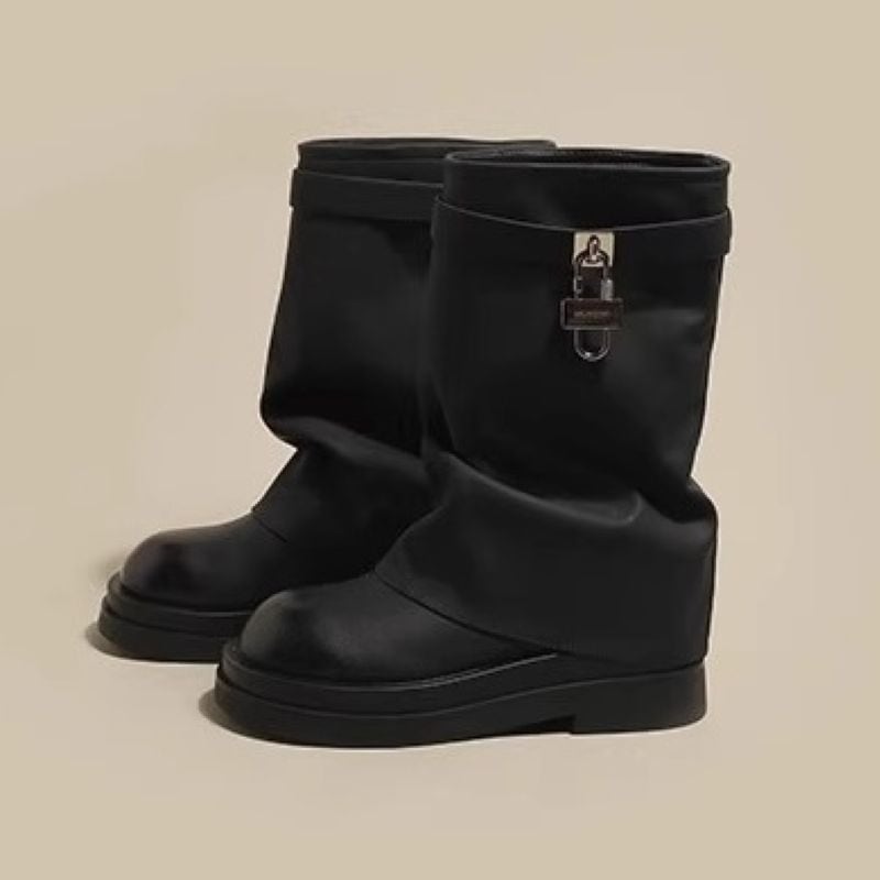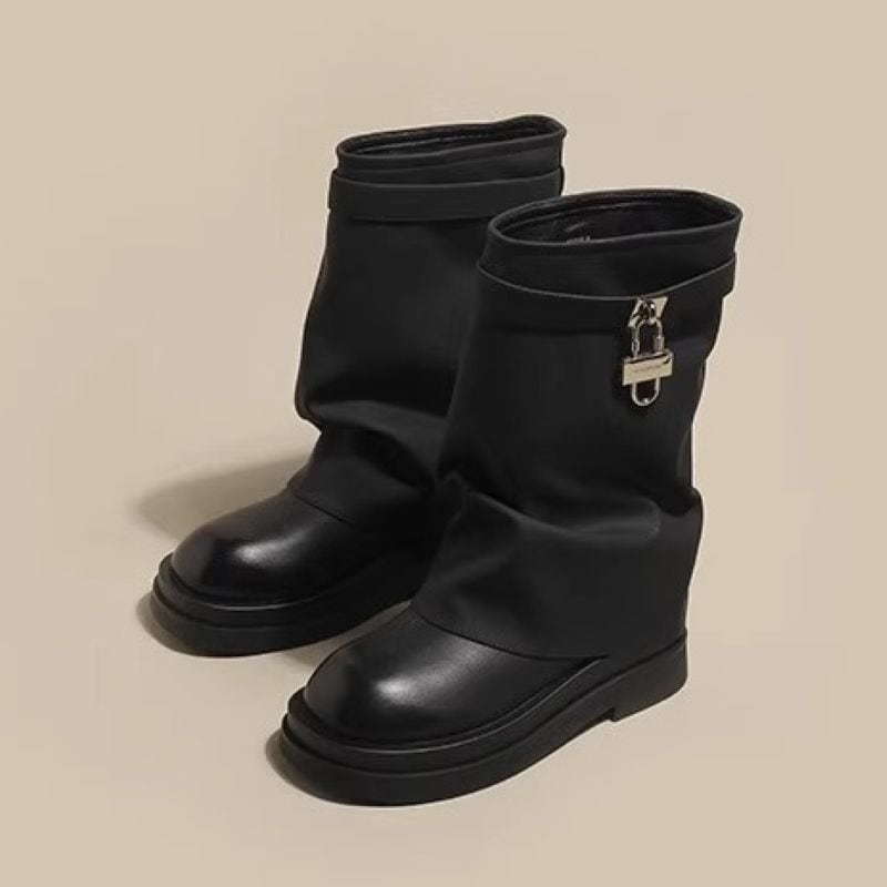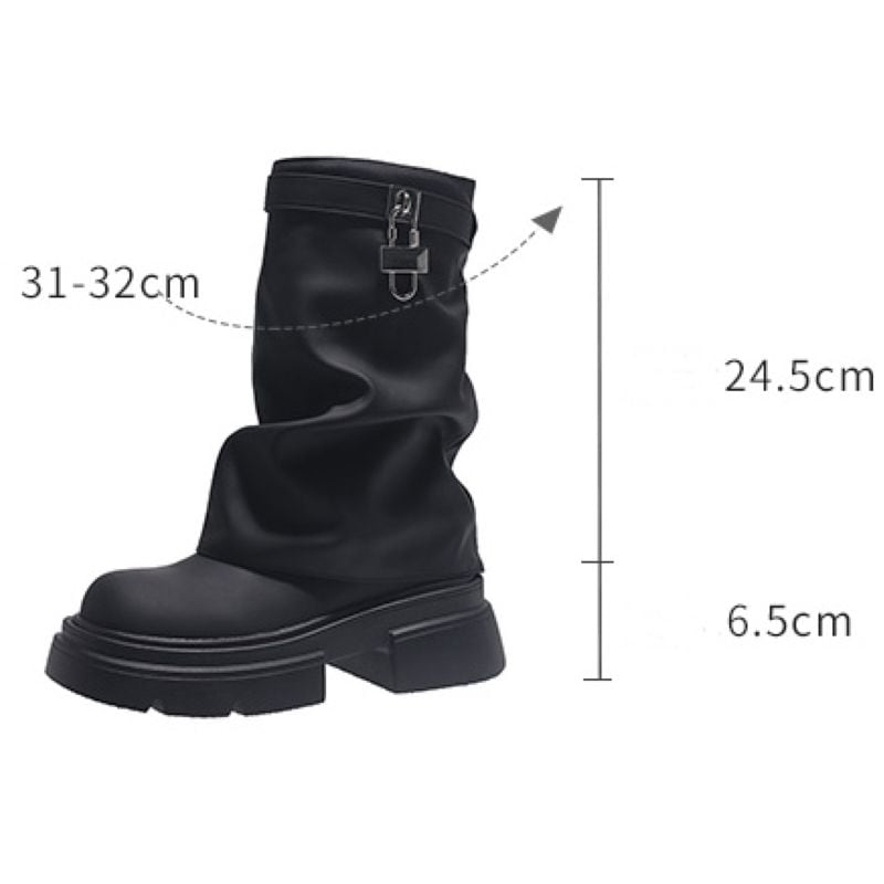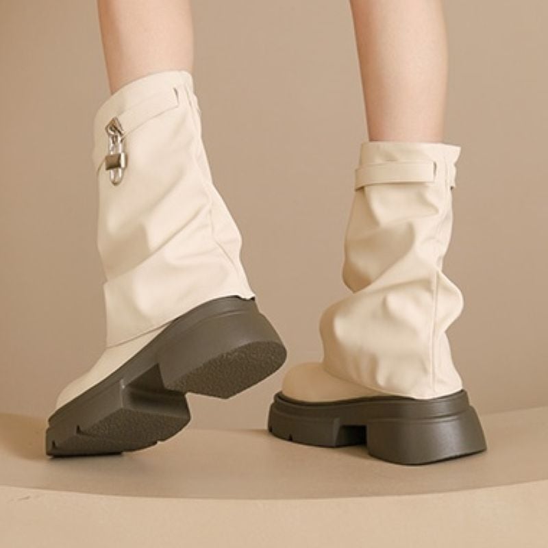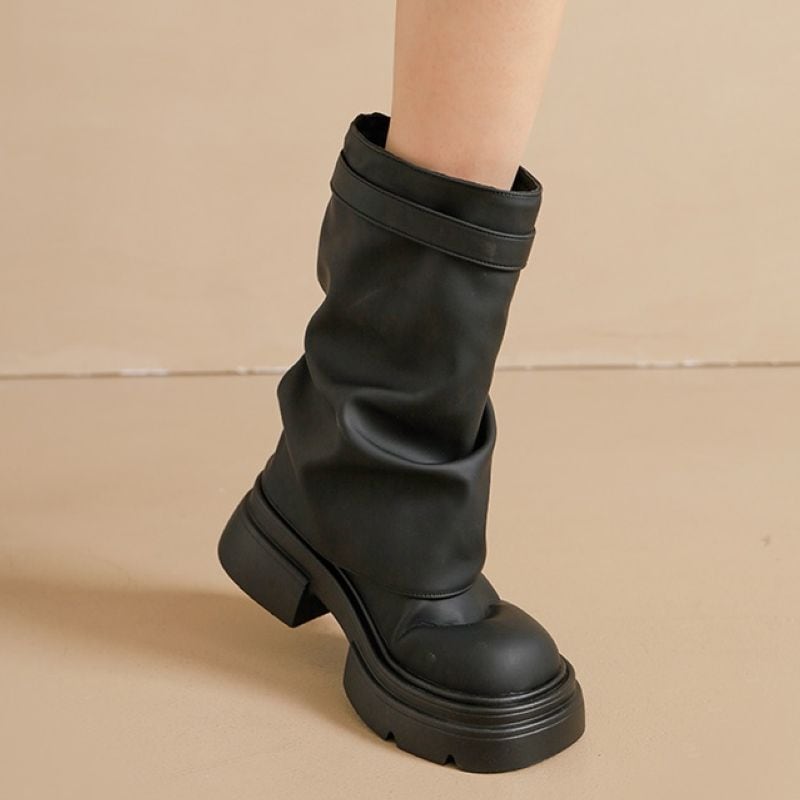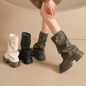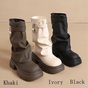 クシュっとシワの寄った筒周りがポイントのロングブーツ。