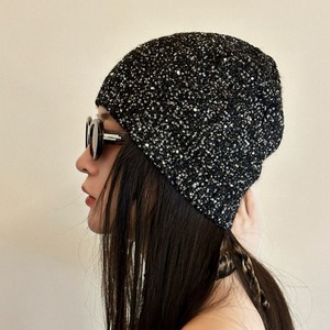 Sequin ribbed knit hat V1798