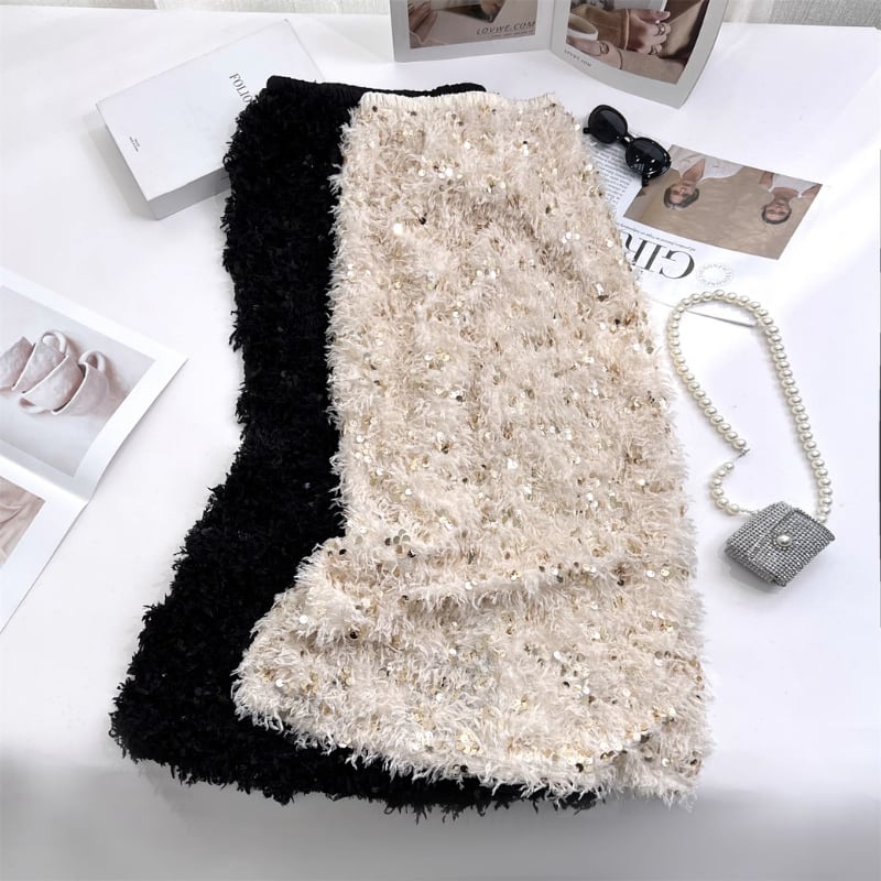 Sequin fringe back slit skirt 2 colors V1732