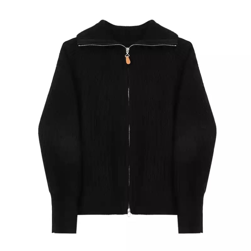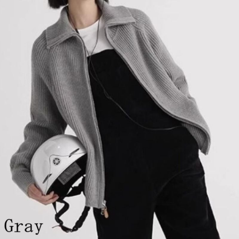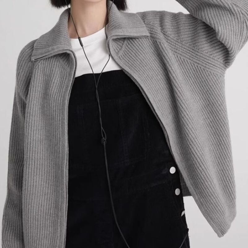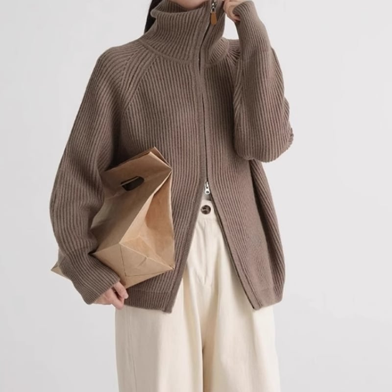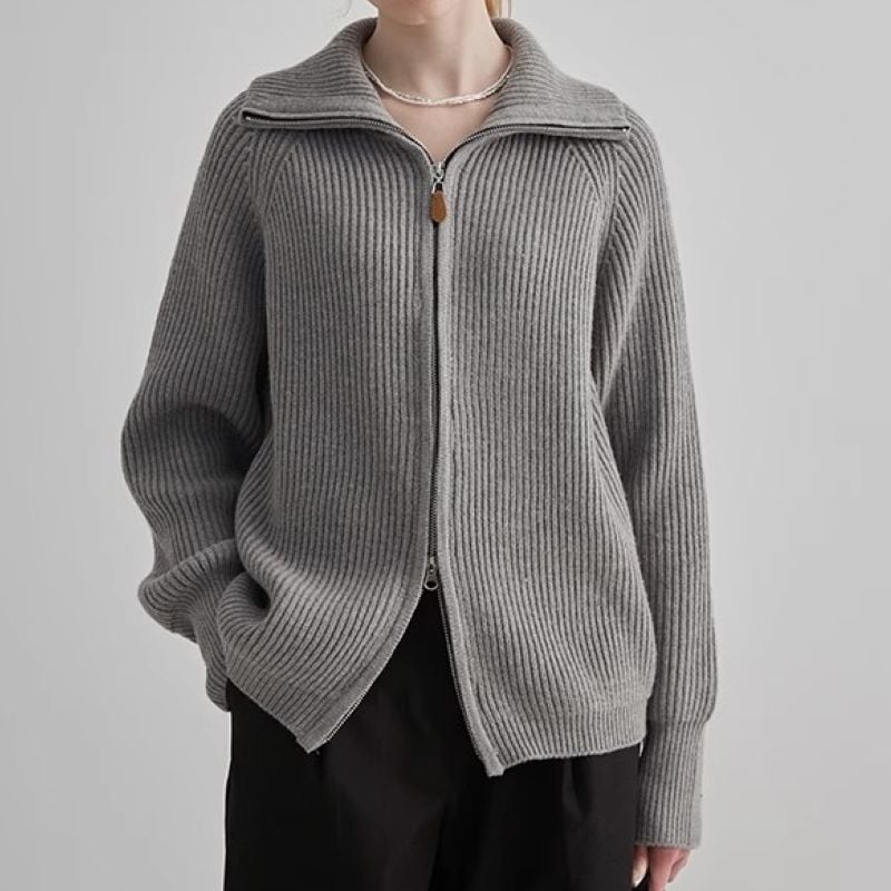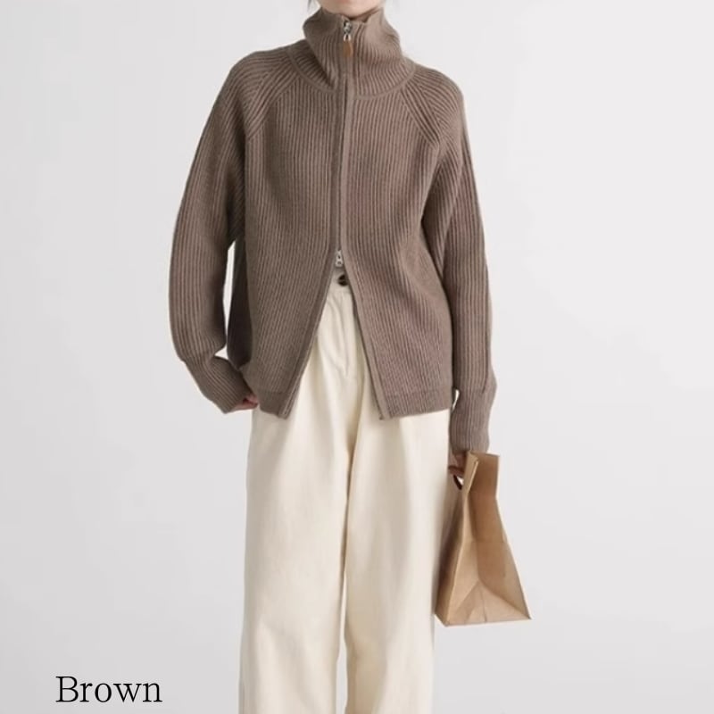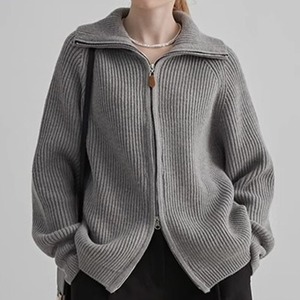 Stand collar double zipper cardigan 4 colors V1735