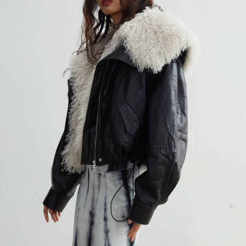 シーズンムードを高めてくれるフェイクレザージャケット。