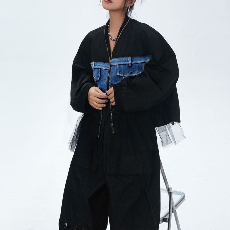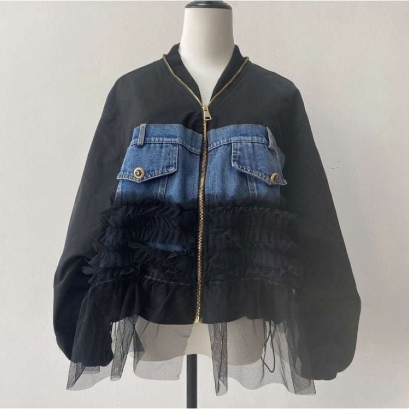 軽やかなチュール素材が、カジュアルなデニムと絶妙に調和し、