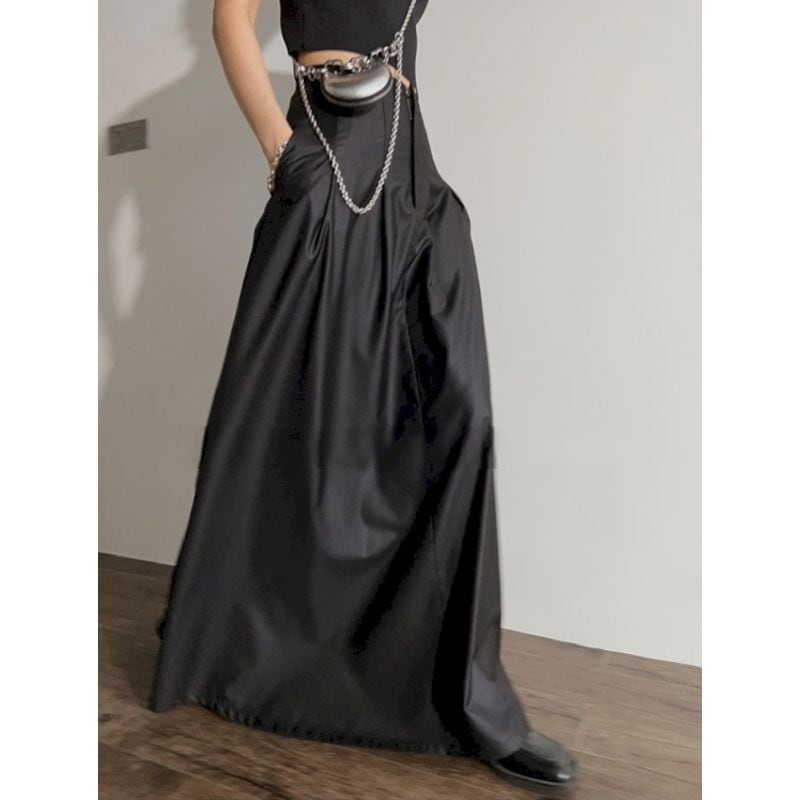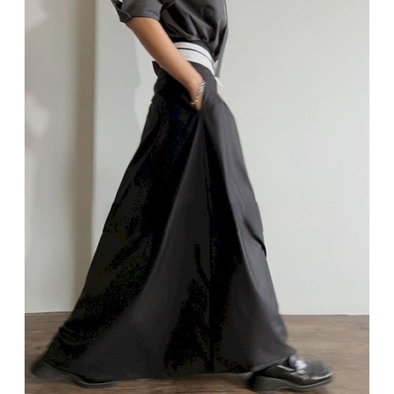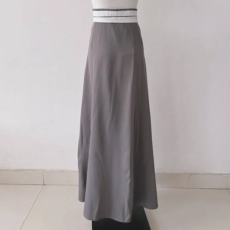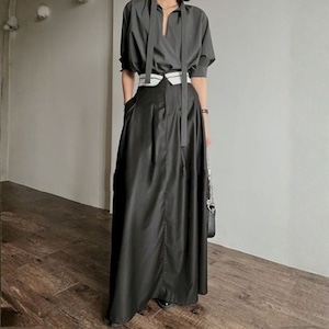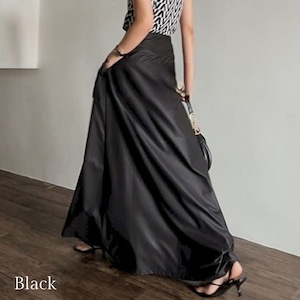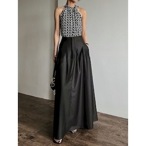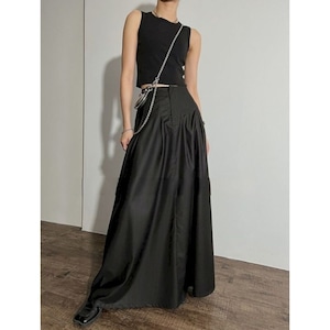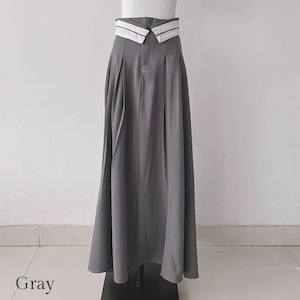 ウエストの折り返しデザインが個性的なロングスカート。