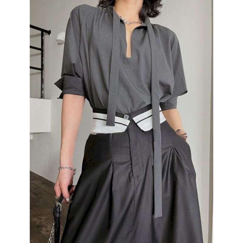 High waist lapel flare skirt 2 colors V1763