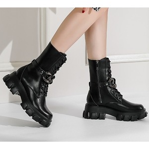 フロントの大き目チェーンがモード感ある厚底ブーツ。