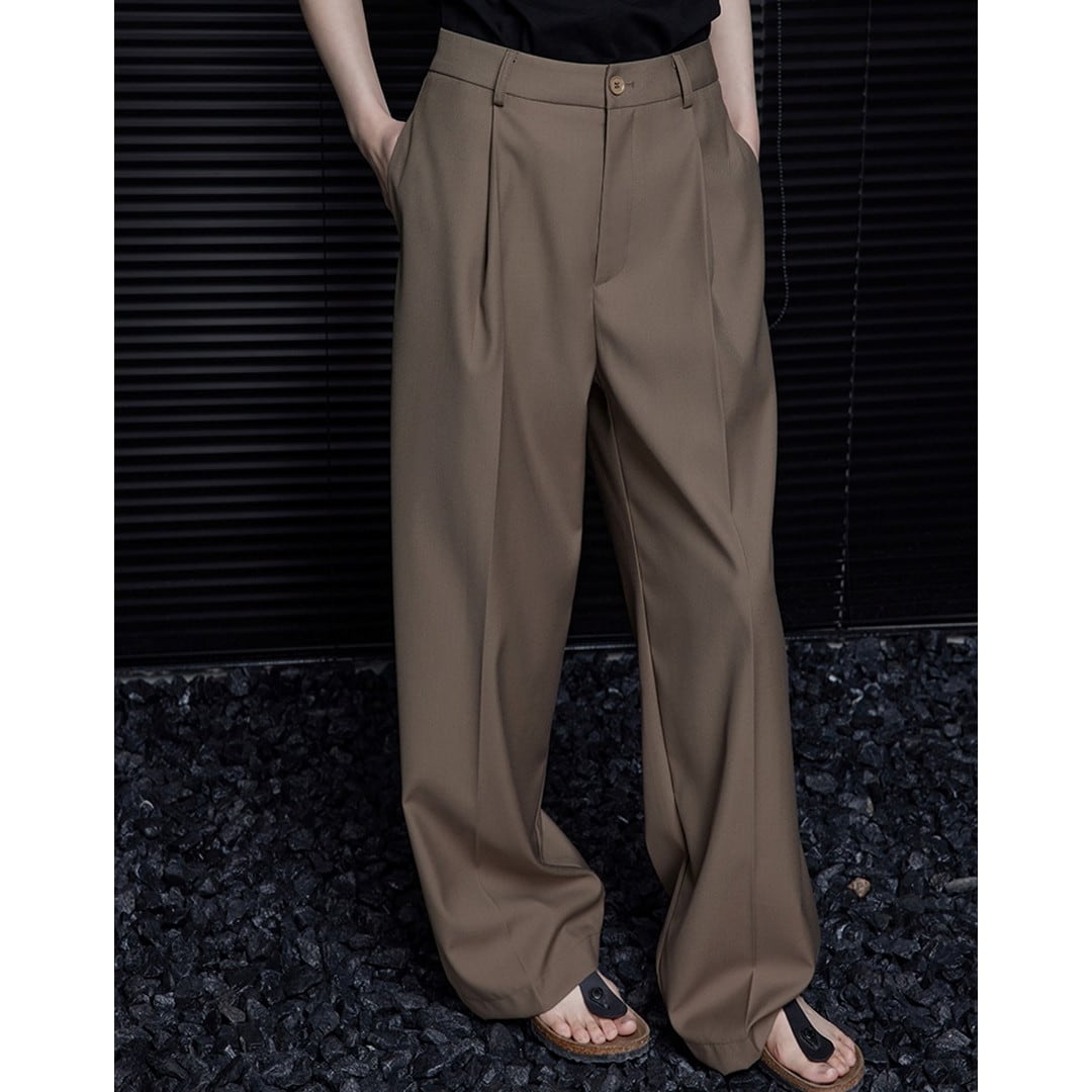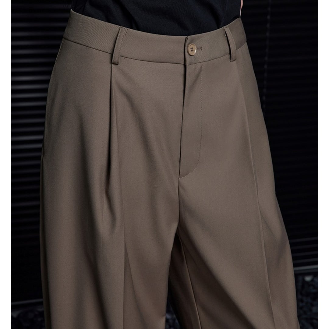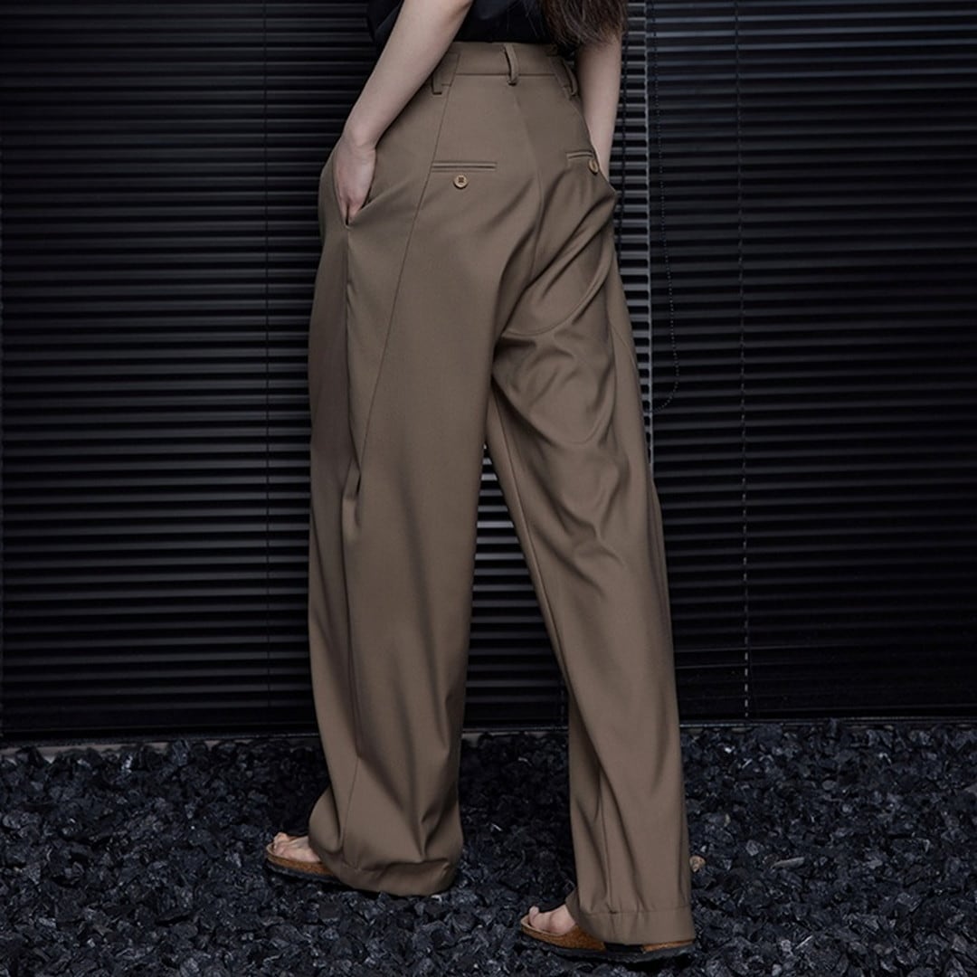 腰回りのさりげないタックデザインがスタイリッシュなスラックスパンツ。