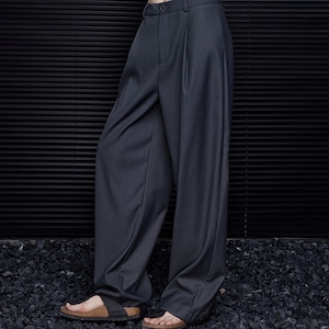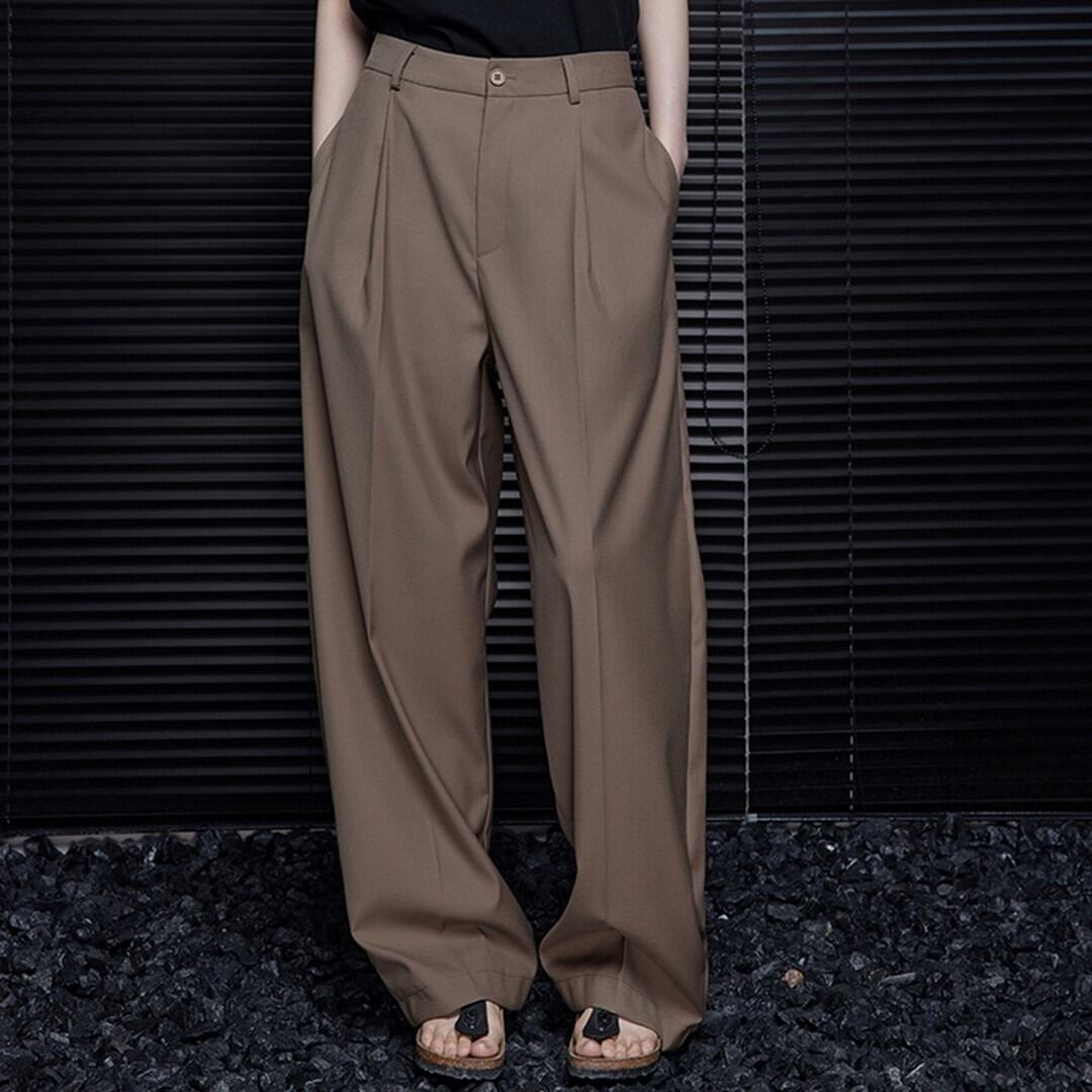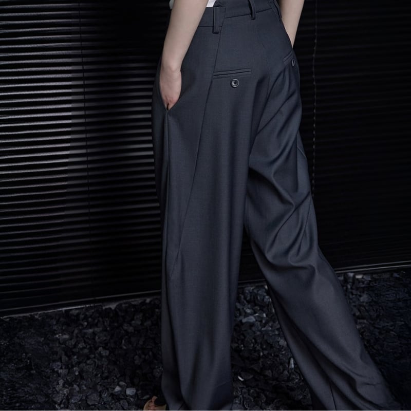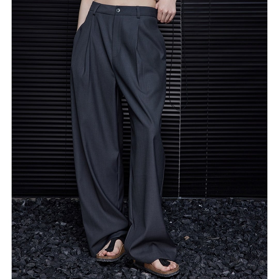 腰回りのさりげないタックデザインがスタイリッシュなスラックスパンツ。