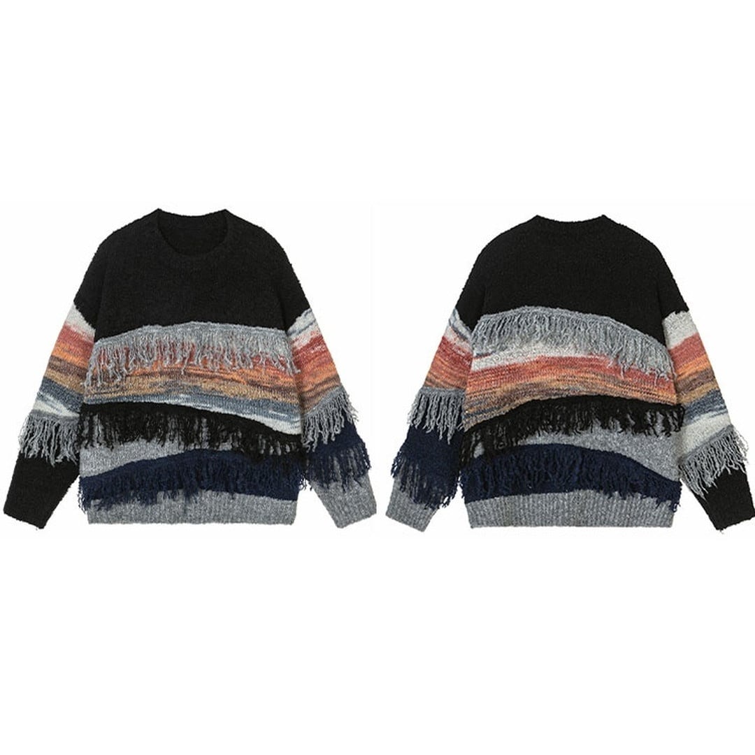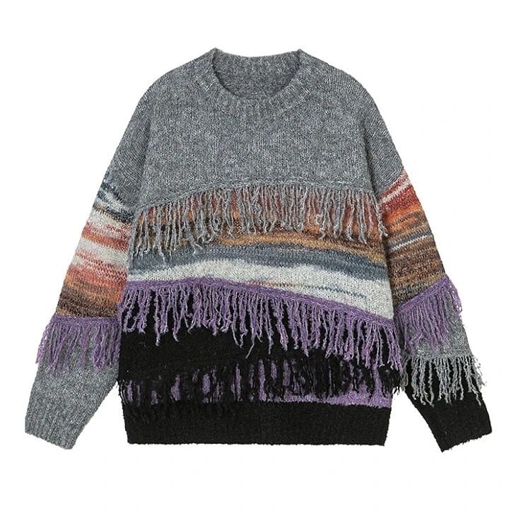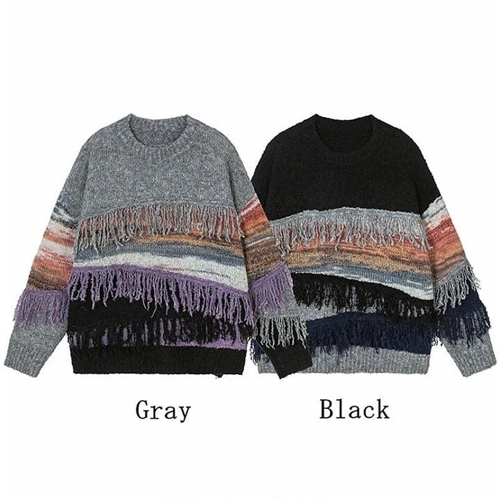 Vintage striped fringe knit 2 colors V1835