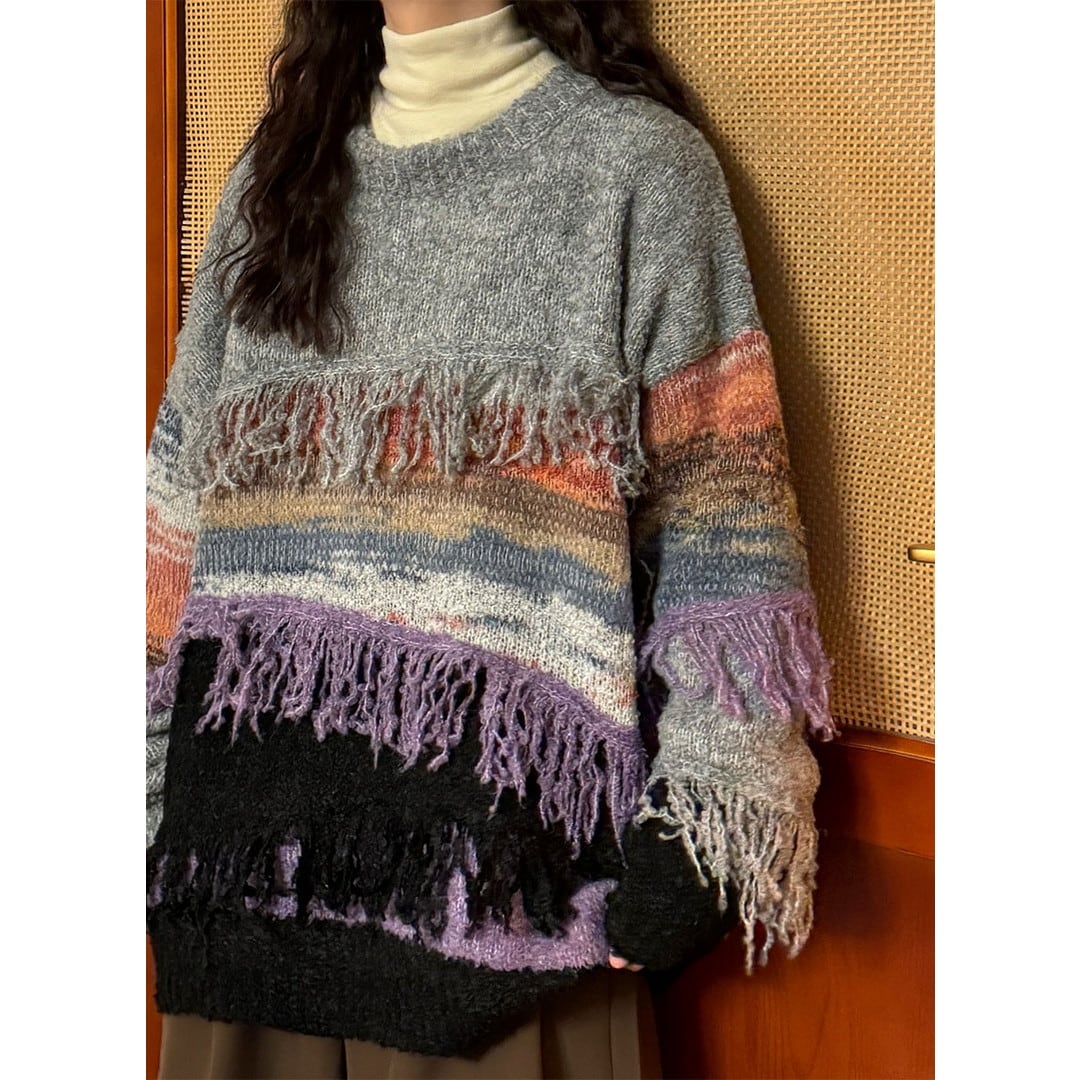 マルチカラーがヴィンテージ感あるニット。