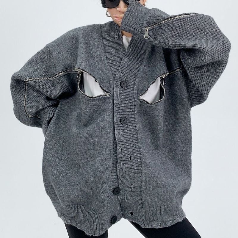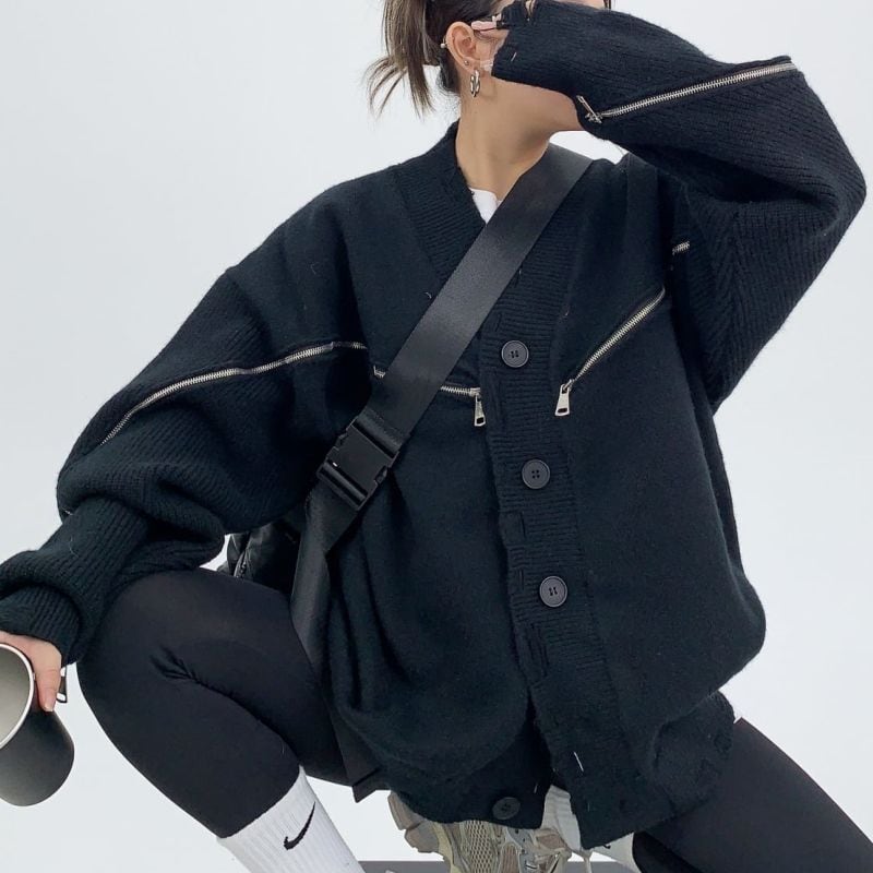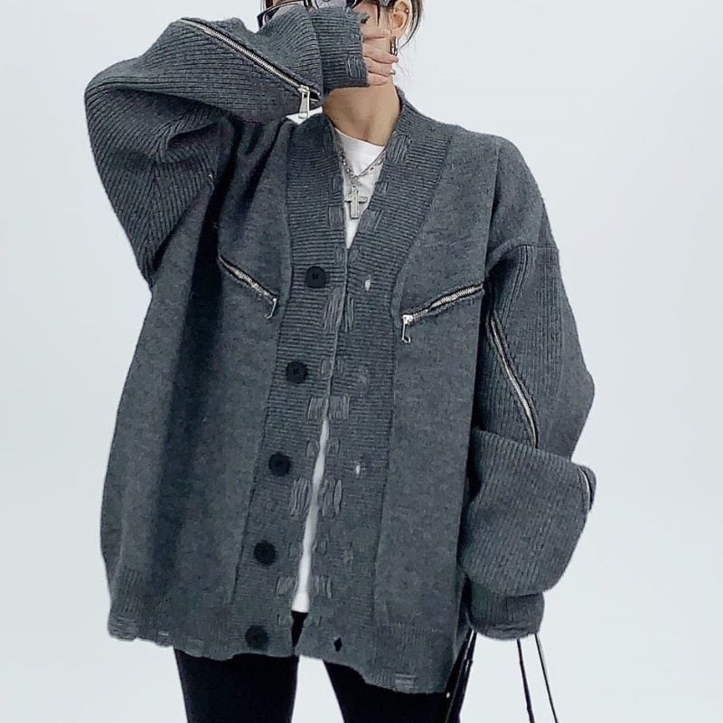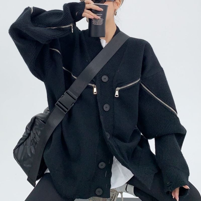 Zip accent oversized cardigan 2 colors V1929