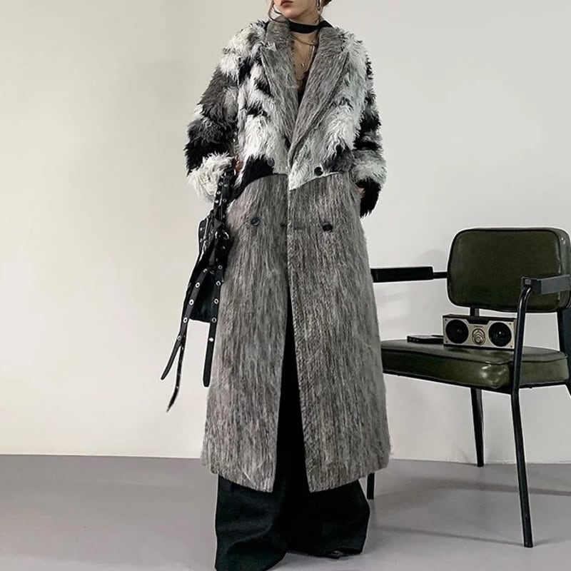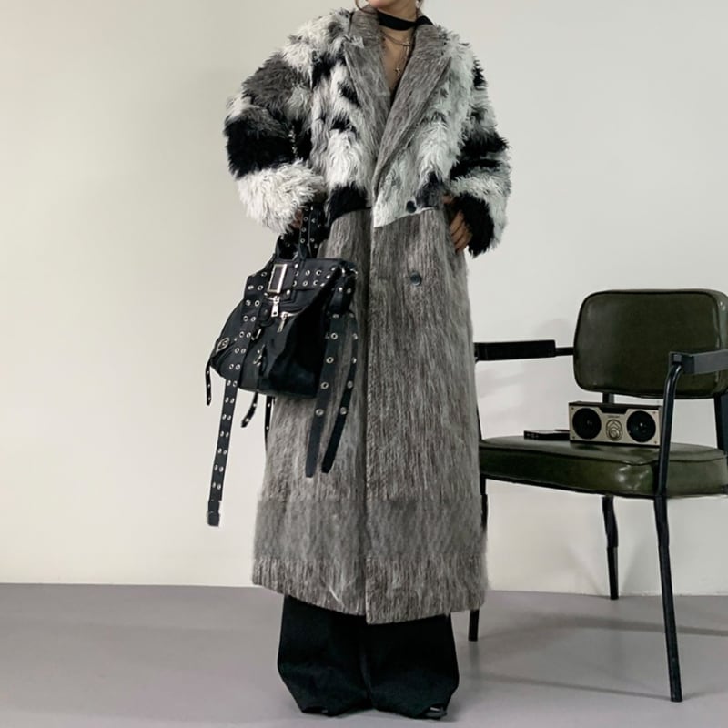 贅沢な雰囲気を纏うミックスカラーのファーがポイントのコート。